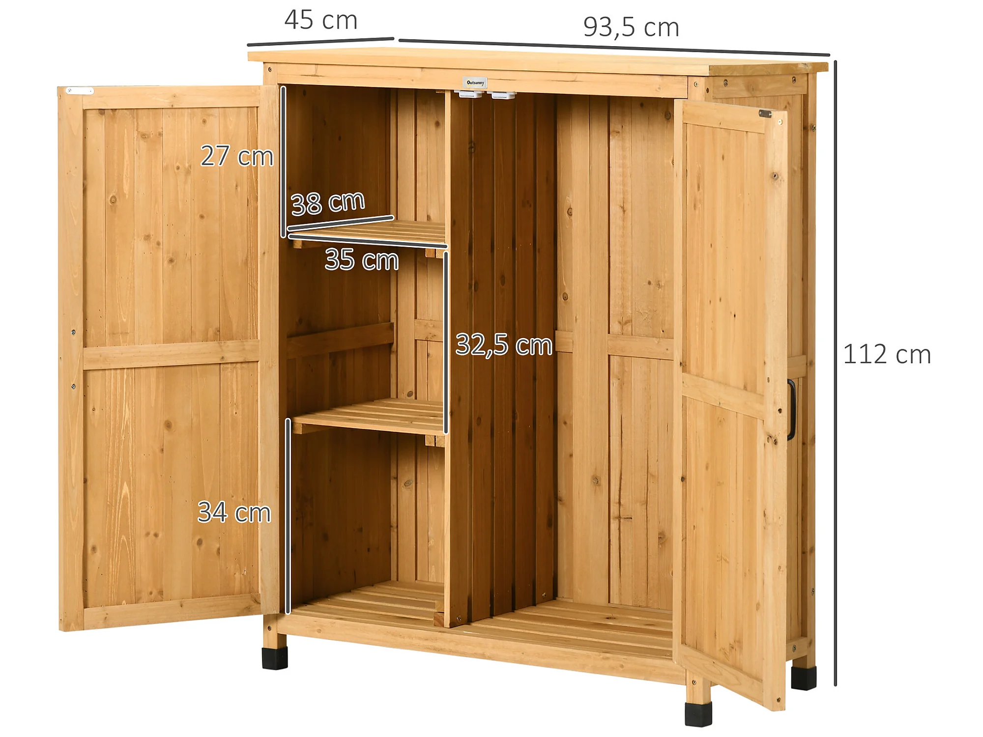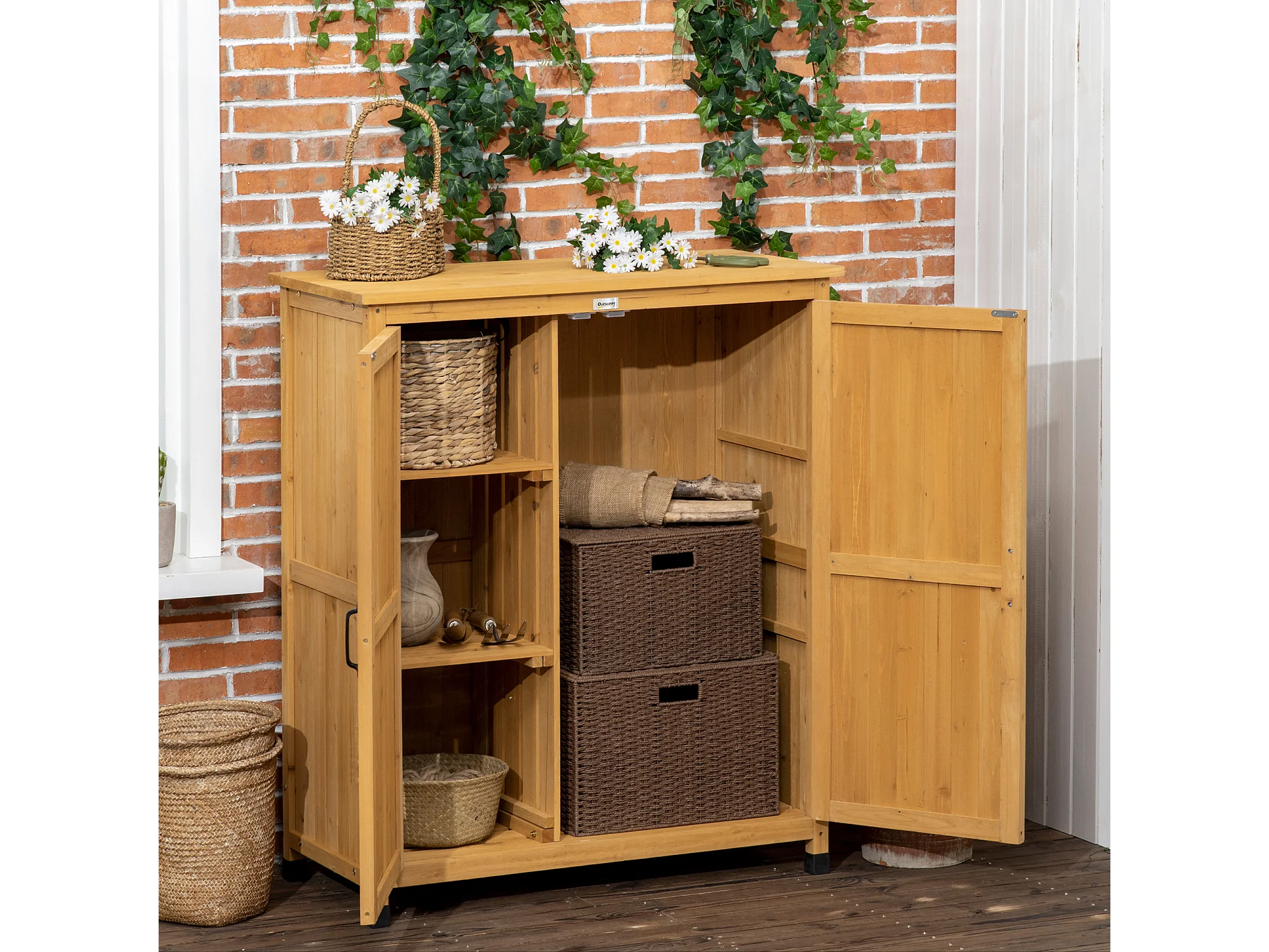 Armoire de jardin sur pied table de rempotage 2 en 1 - double porte, 2 étagères - bois de sapin pré-huilé
