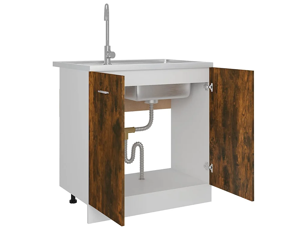 Armoire de plancher d'évier Chêne fumé 80x46x81,5