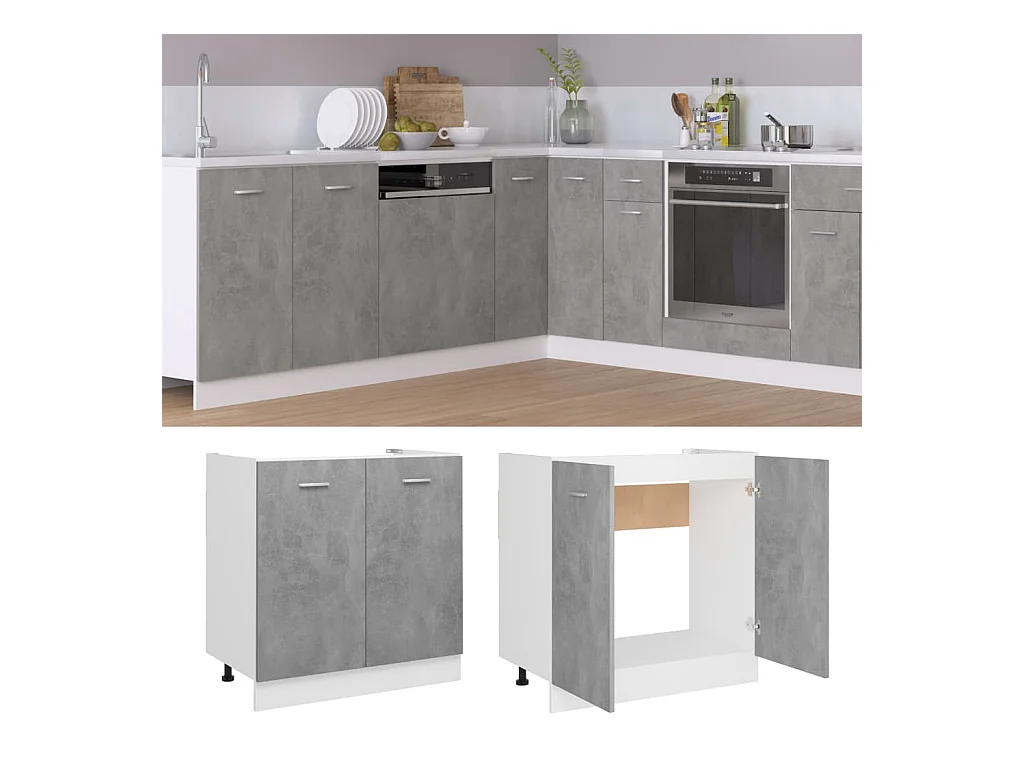 Armoire de plancher d'évier Gris béton Bois d’ingénierie