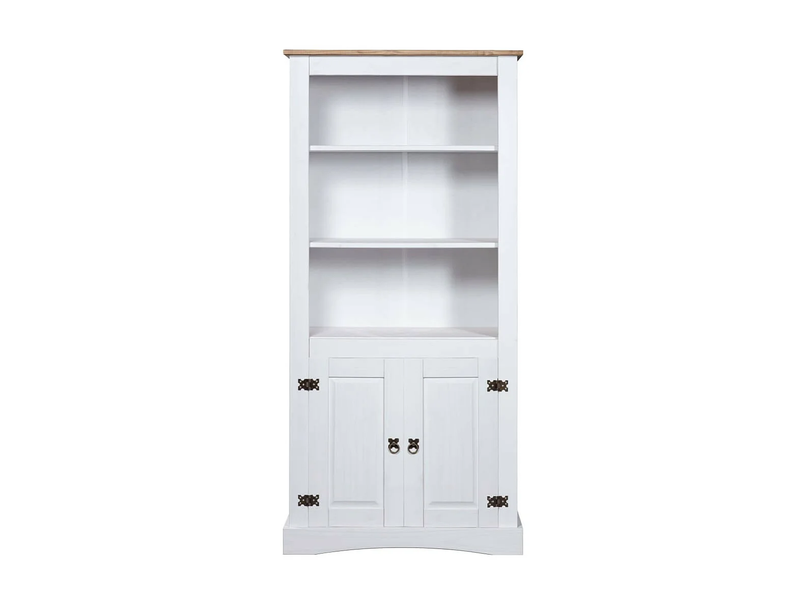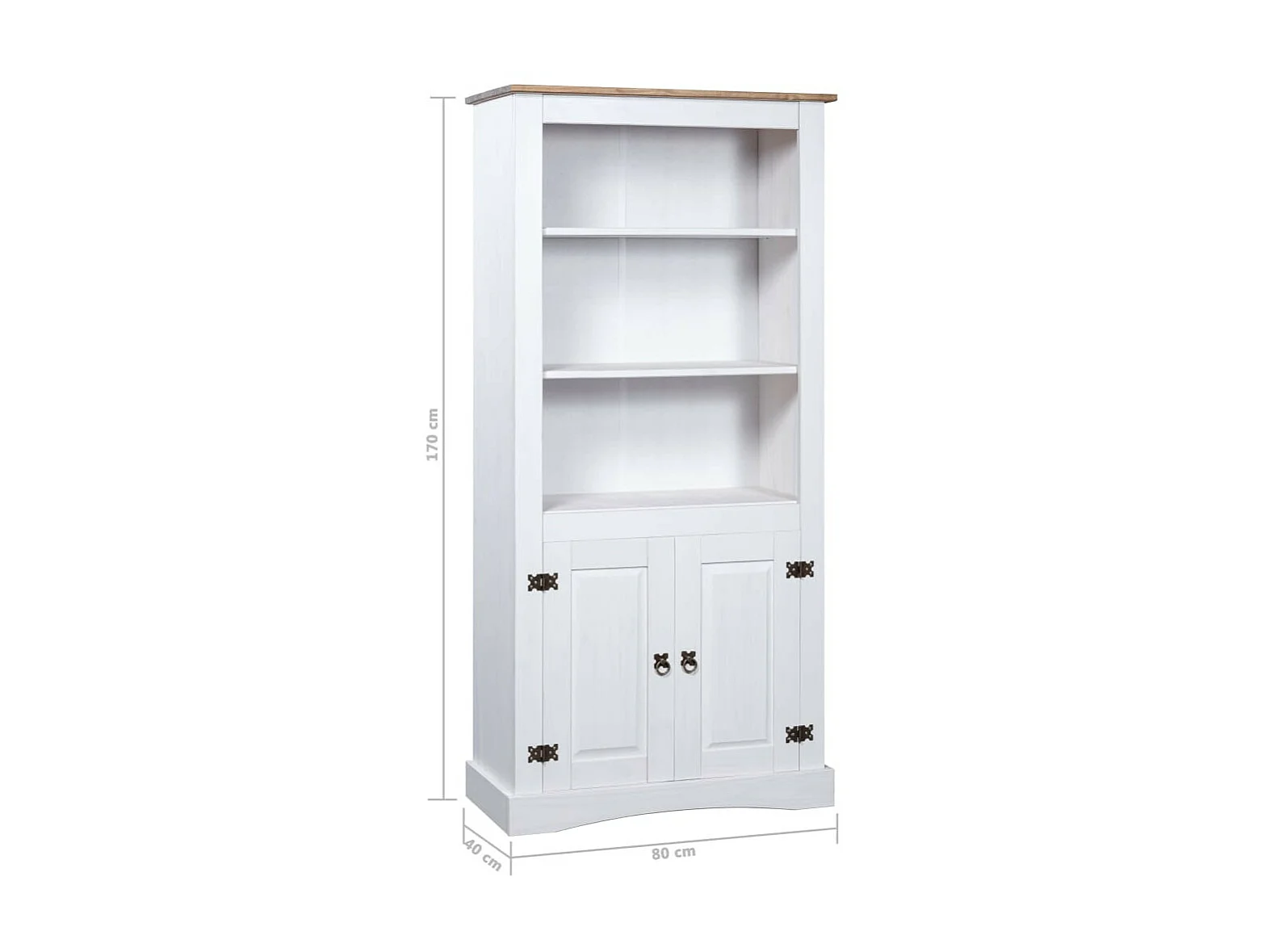 Armoire de rangement 2 portes 3 étagères pin massif blanc et bois clair Harrie