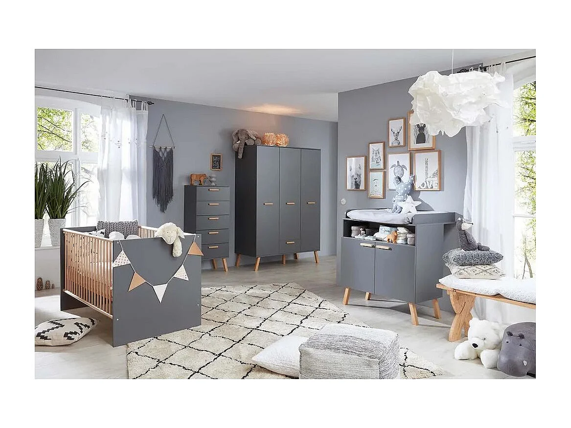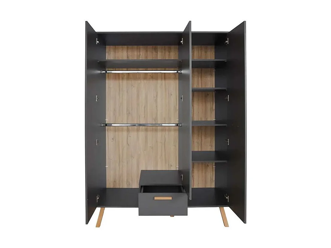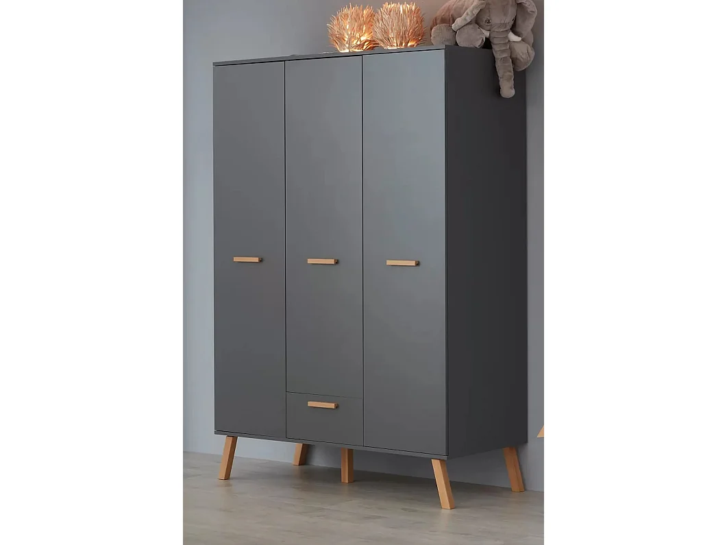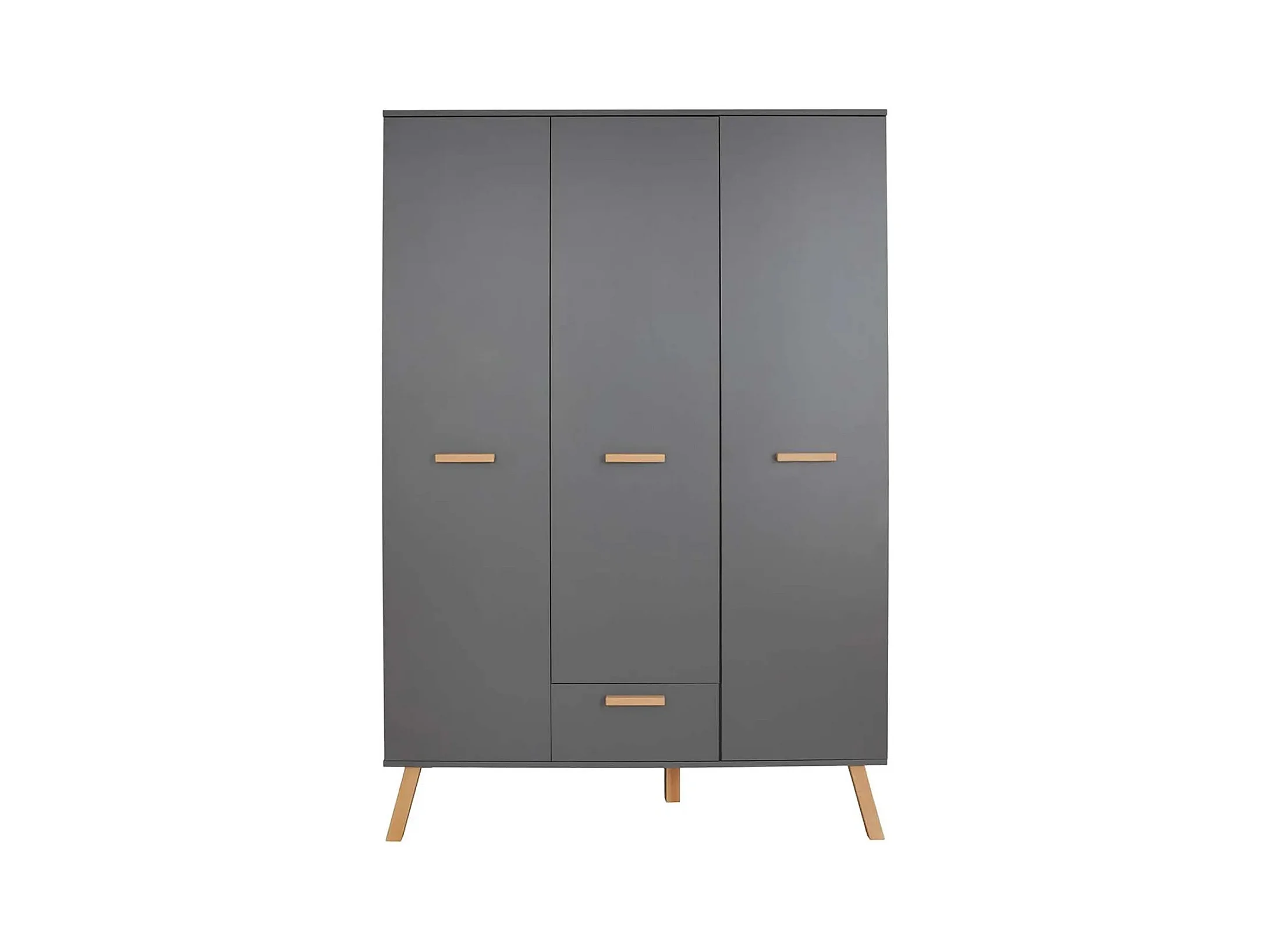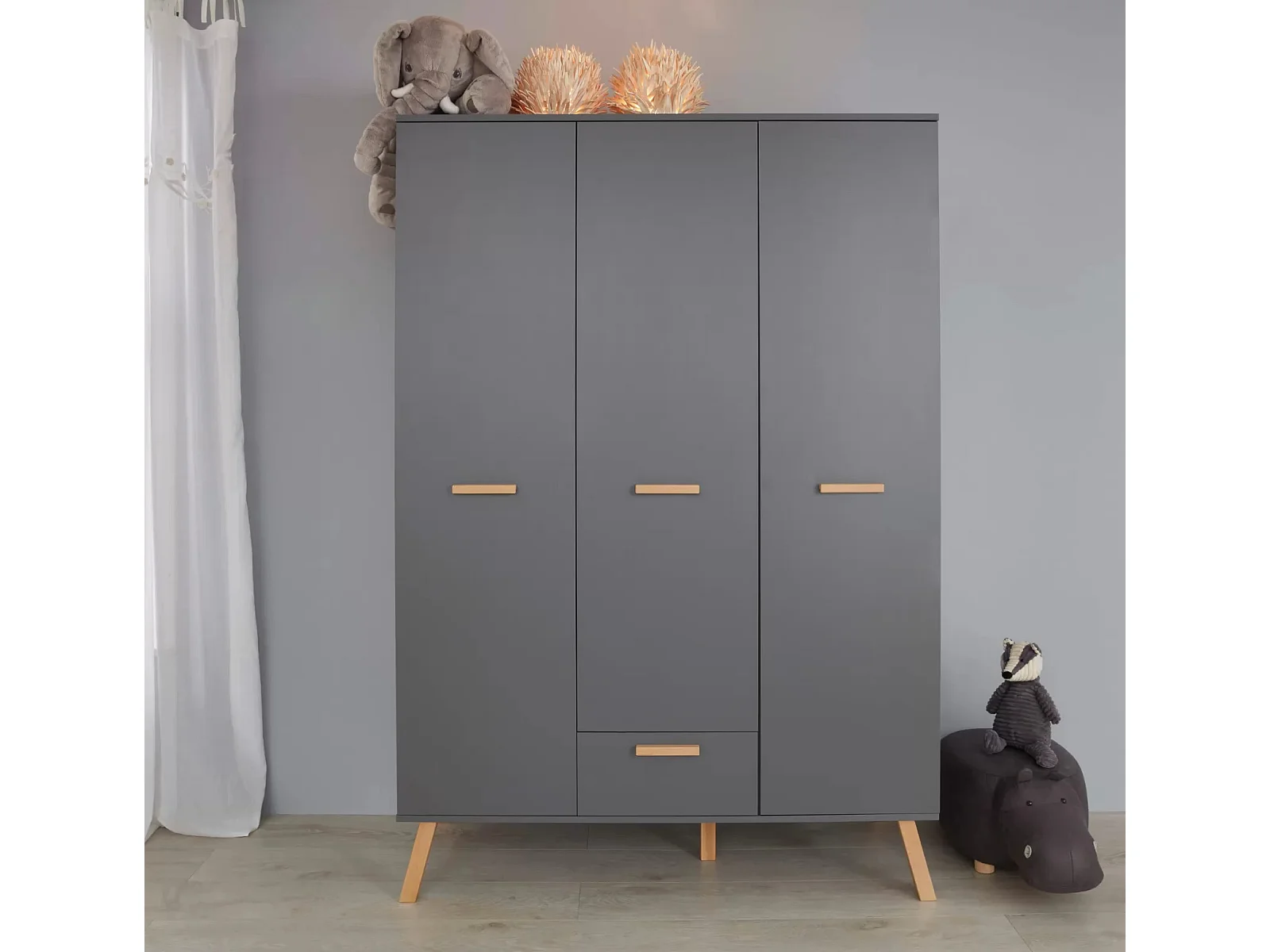 Armoire de rangement 3 portes 1 tiroir mélaminé gris mat Mathys