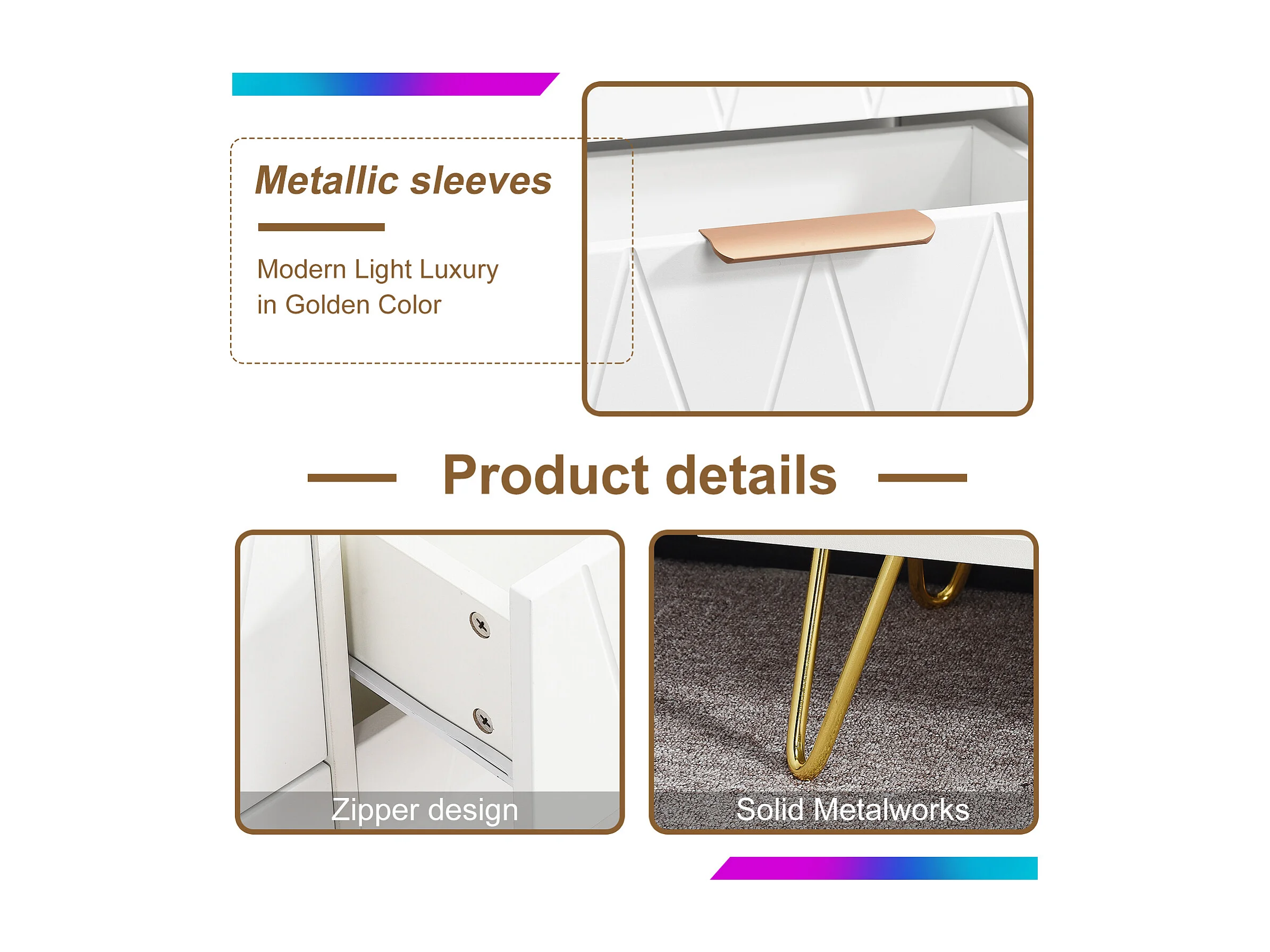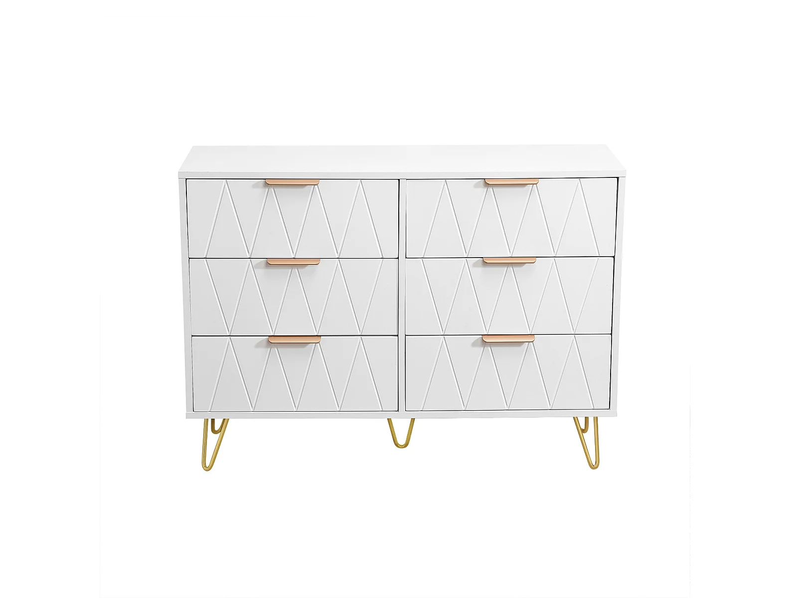 Armoire de rangement à 6 tiroirs - Couverture avec jambes en or - Armoires au sol modernes - Armoire d'accent pour salon couloir salle à manger entrée - blanc