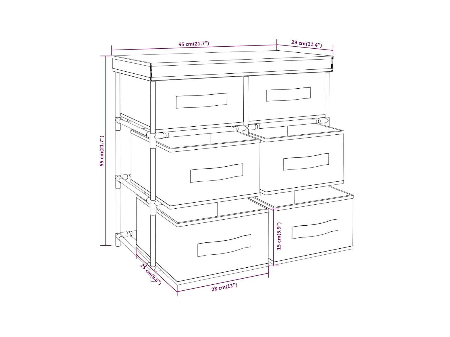 Armoire de rangementt 4 paniers en tissu Crème 63x30x71 cm Acier SDG32284 SBC1175