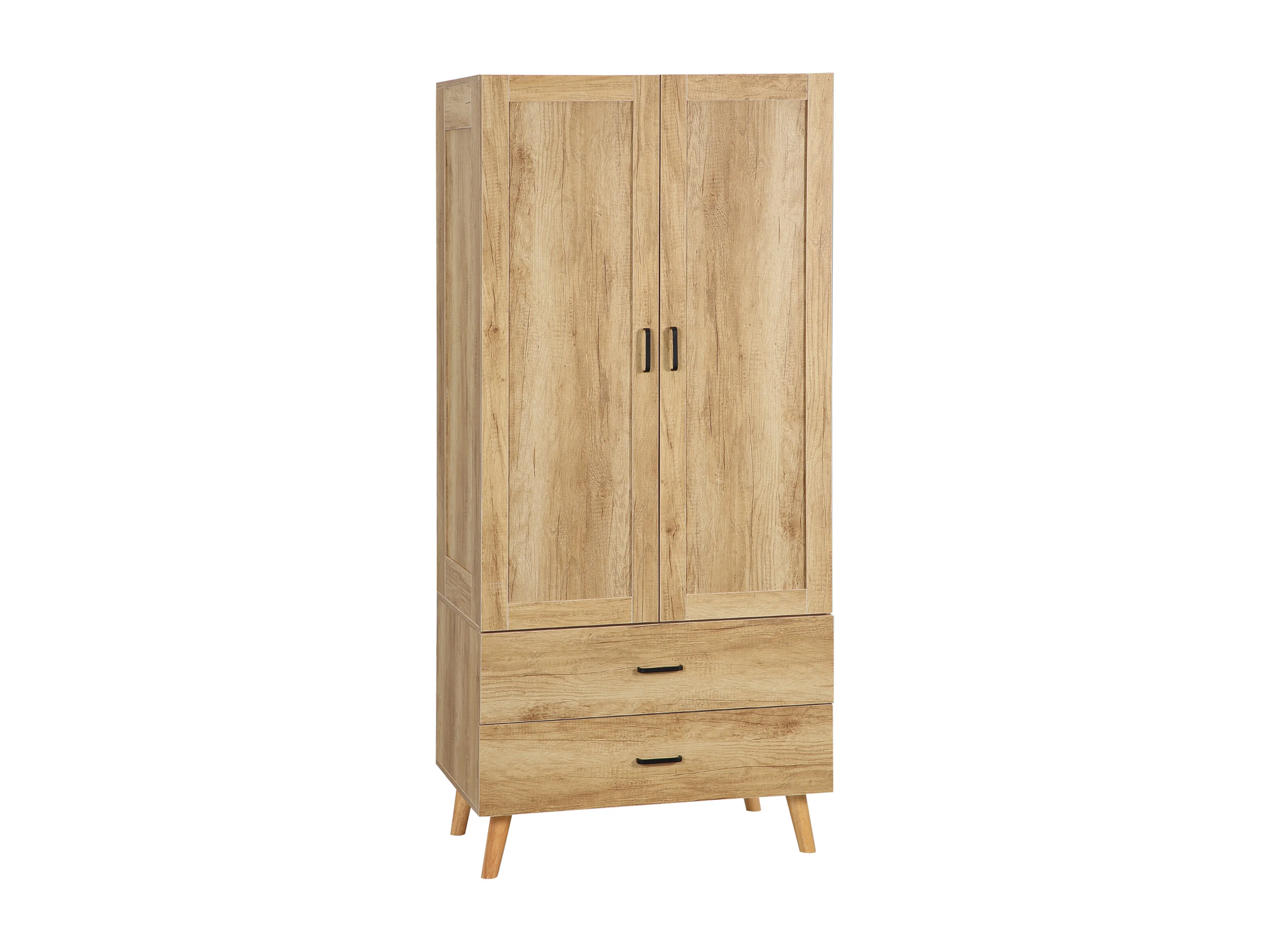 Armoire de rangement design scandinave - armoire de chambre - placard 2 portes avec penderie - 2 tiroirs - aspect chêne clair