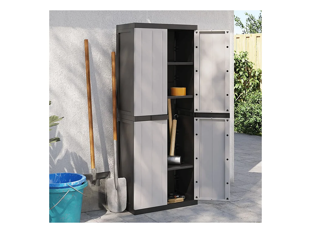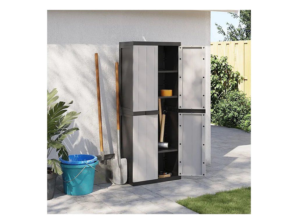 Armoire de rangement d'extérieur gris et noir 65x37x165 PP