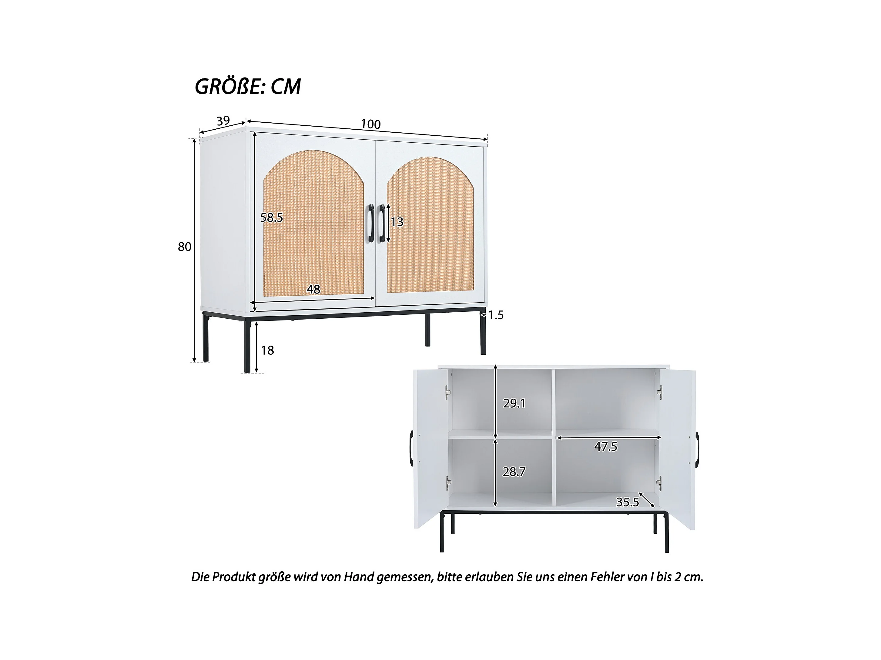 Armoire de rangement en rotin, armoire à deux portes, dimensions : L100/H80/D39 cm