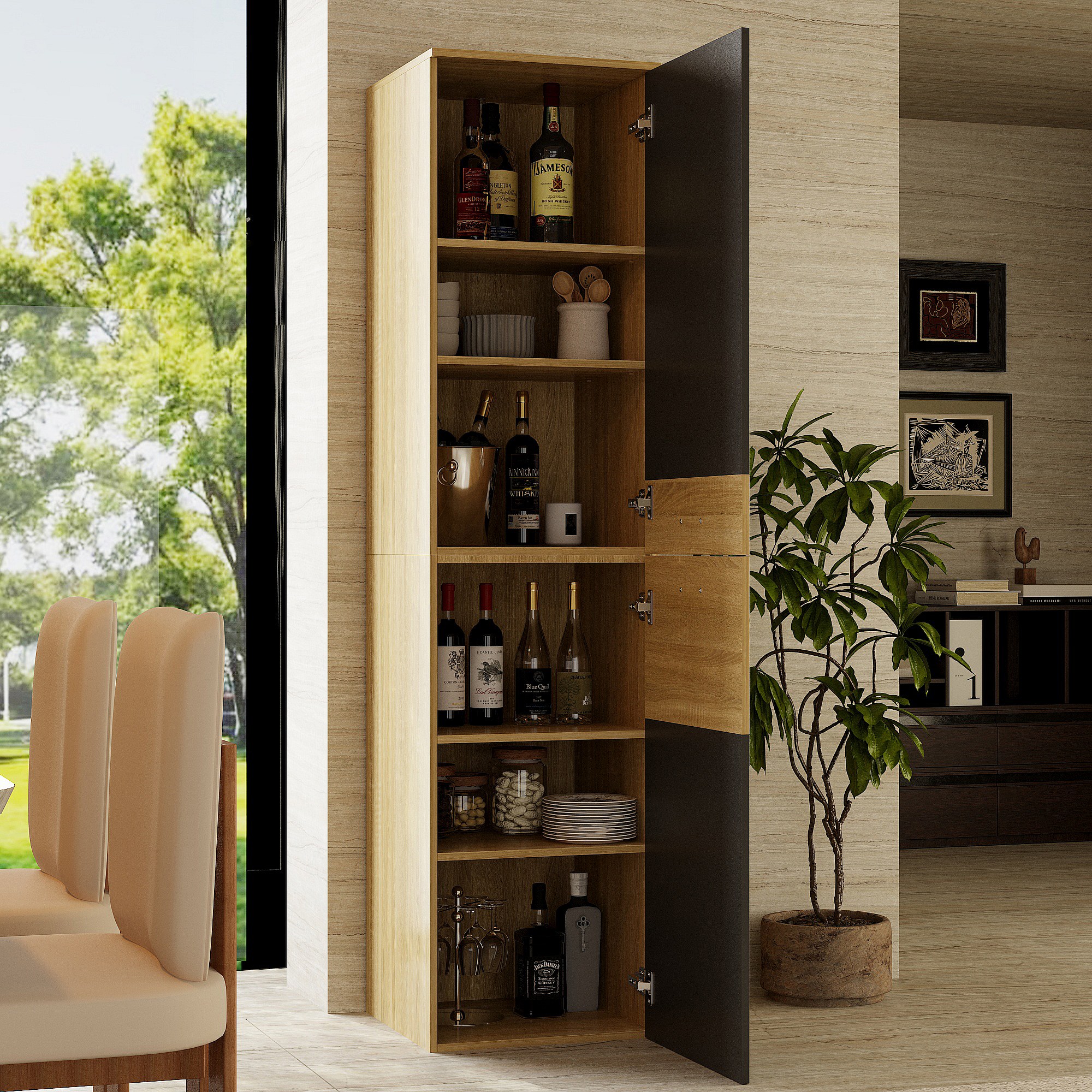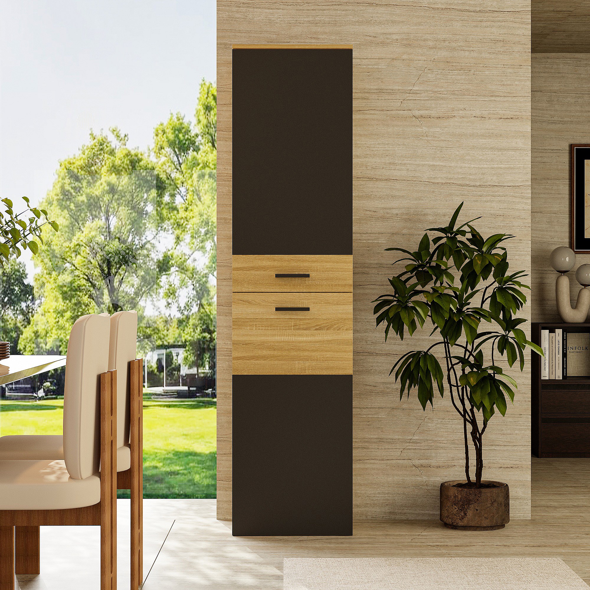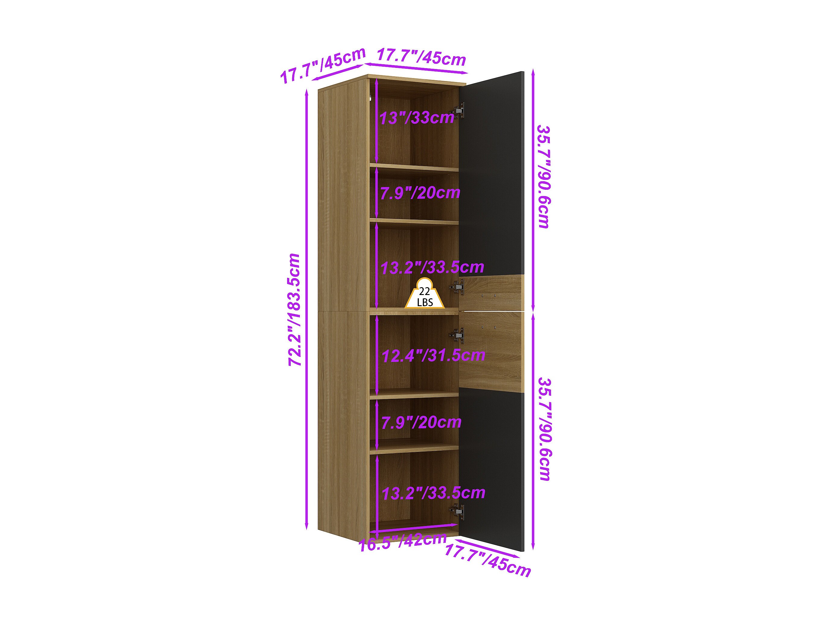 Colonne de Cuisine - Meuble de Cuisine avec 2 Portes et Étagères Réglables, Salle à Manger, 45 x 45 x 183cm, Gris
