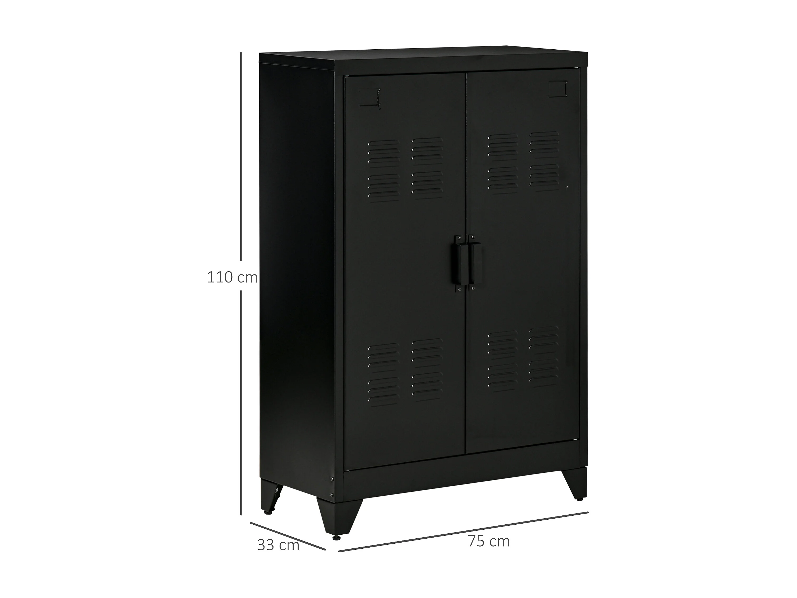 Armoire de rangement métal design industriel - 2 étagères - structure piètement tôle métal noir