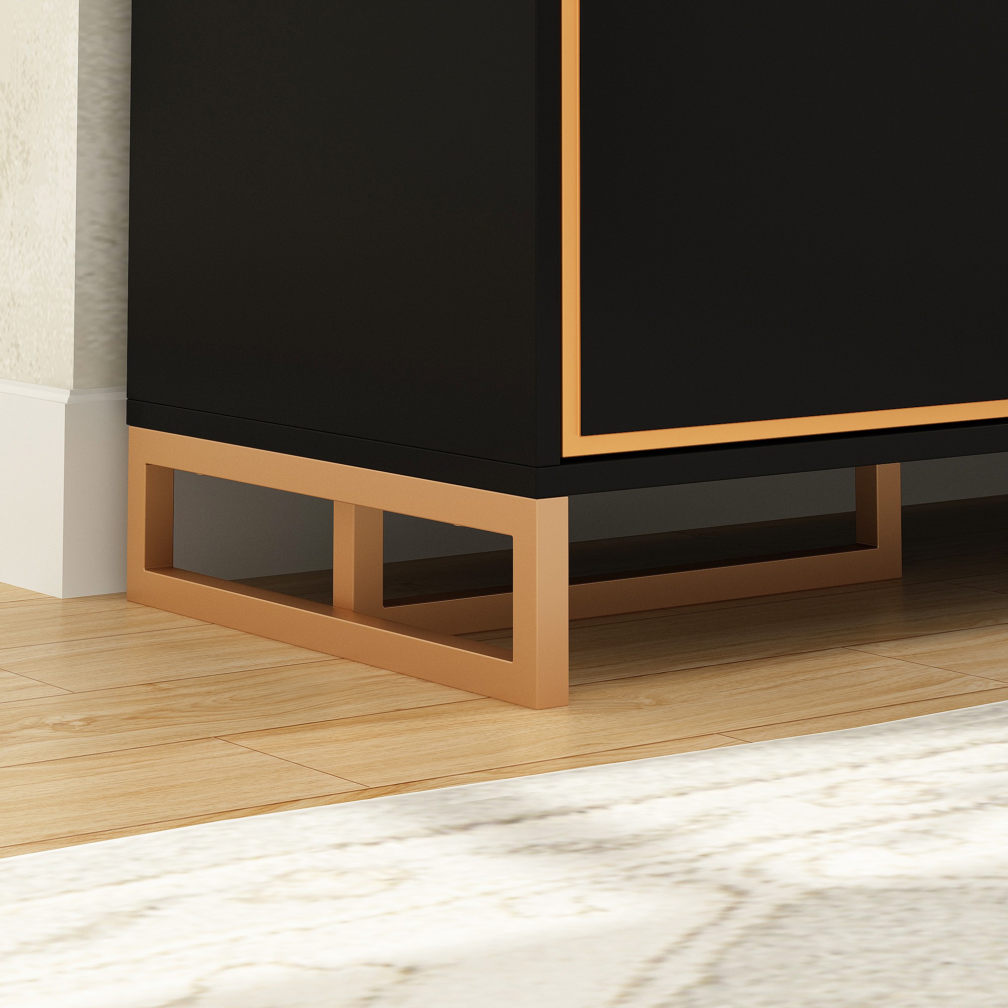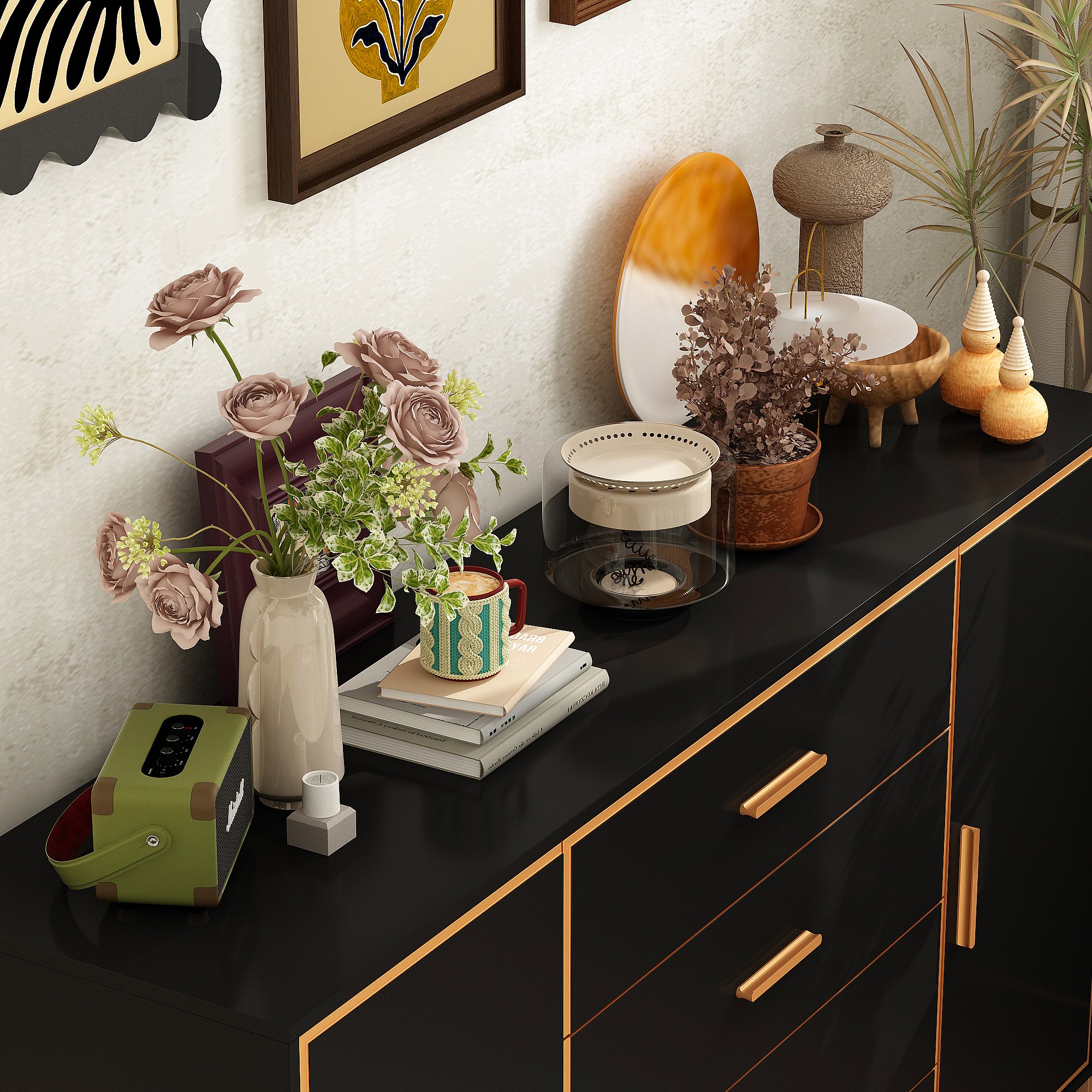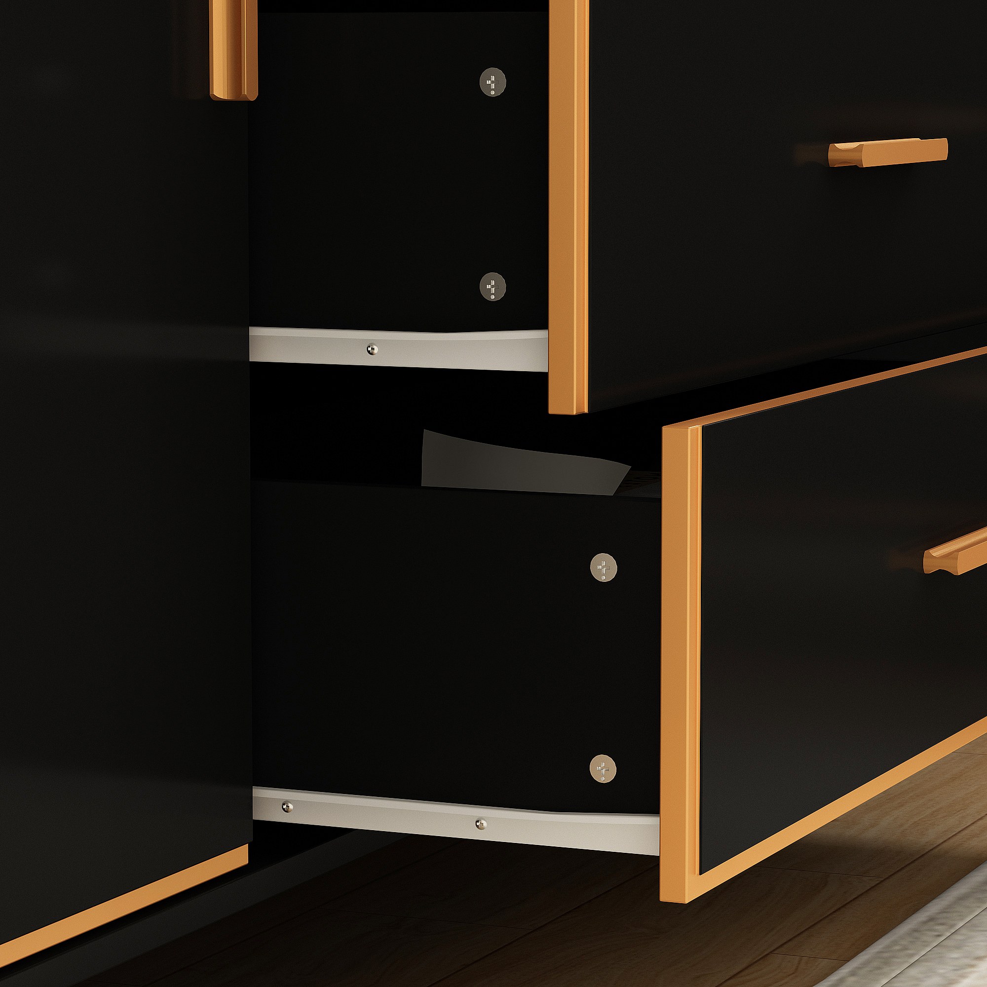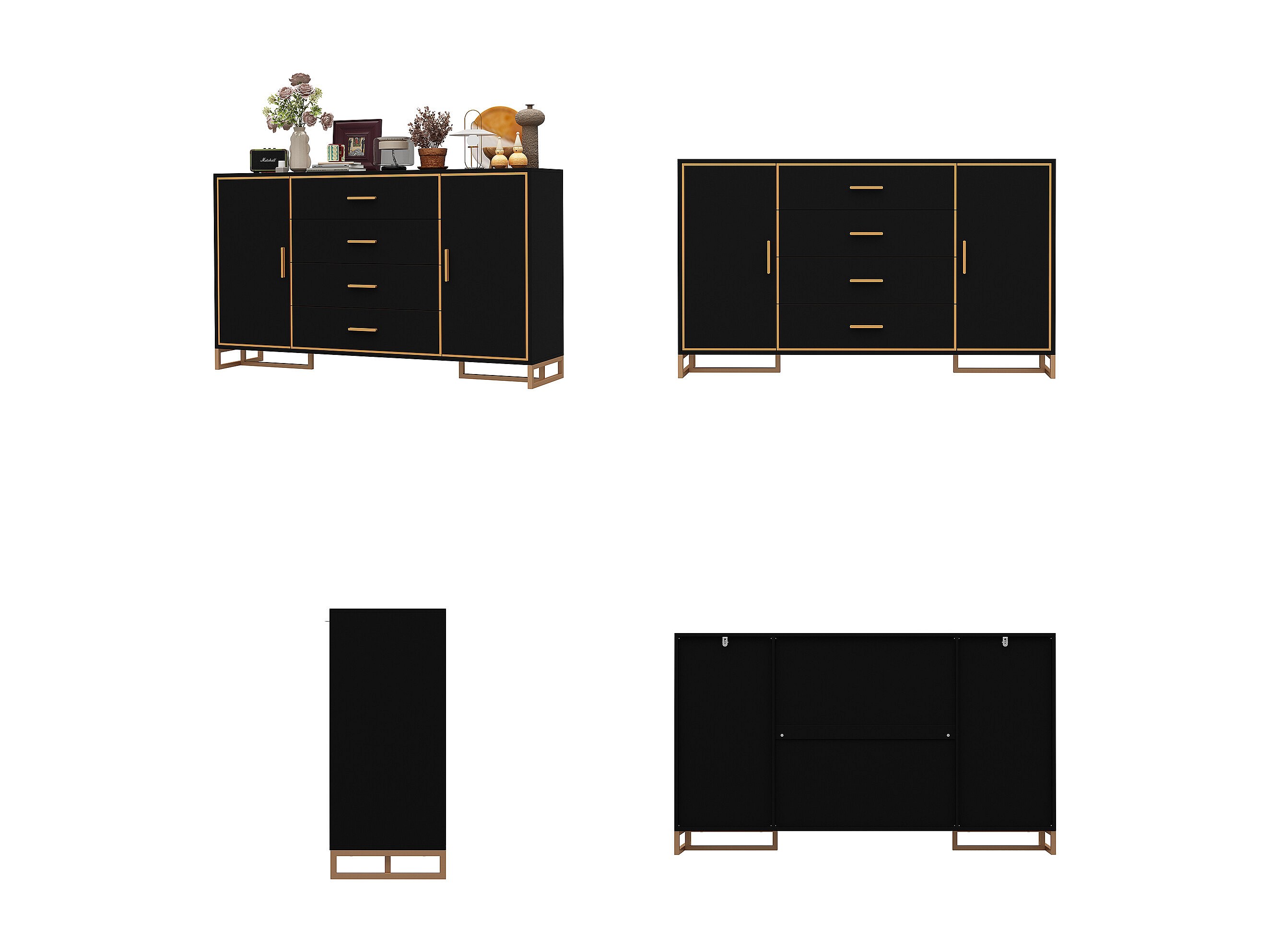 Buffet de Salon avec 2 Portes et 4 Tiroirs, Meuble de Rangement avec Pieds Dorés en Métal pour Chambre, 160 x 40 x 93, Noir Brillant