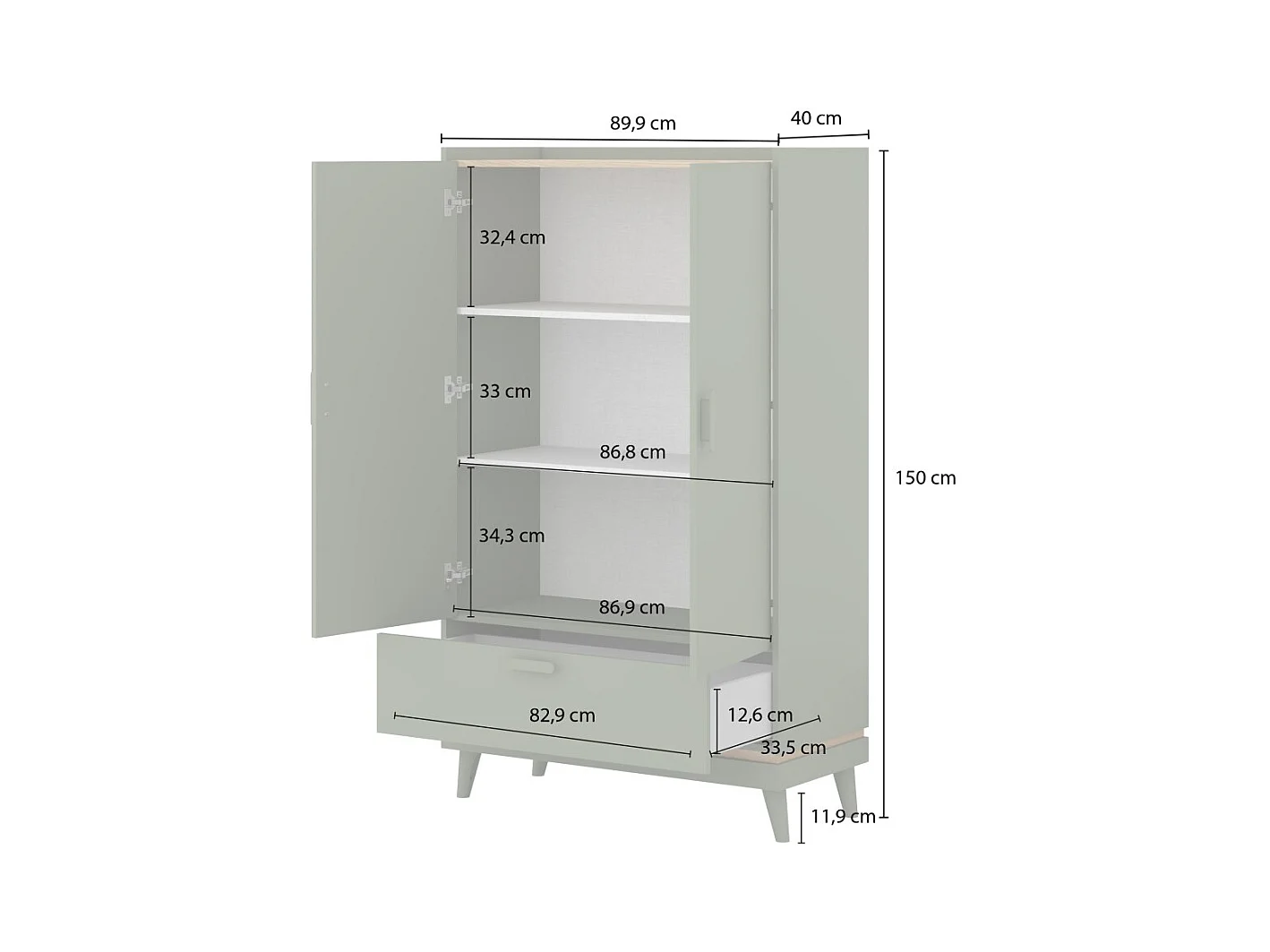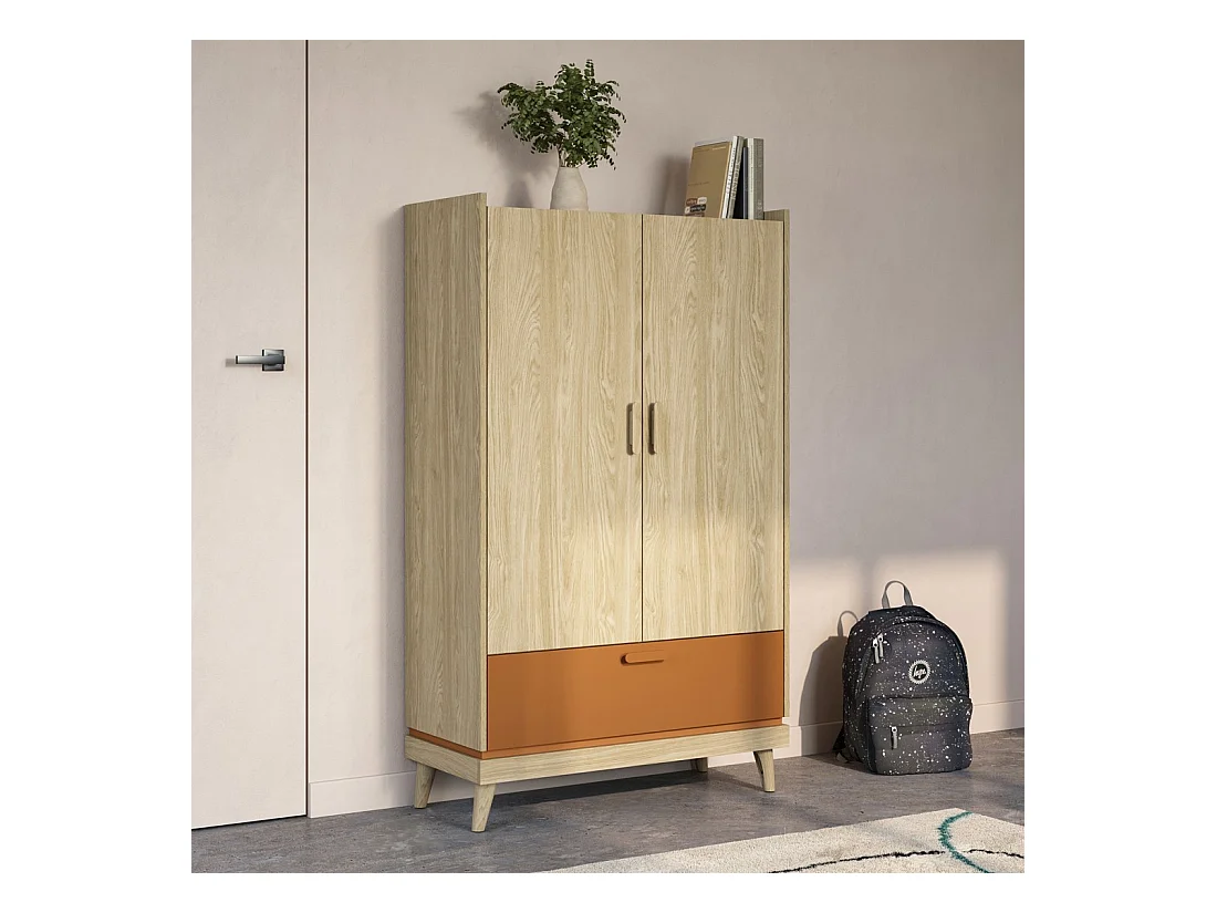 Armoire de rangement NOKI – 2 portes + 1 tiroir chêne clair et moka – Style scandinave