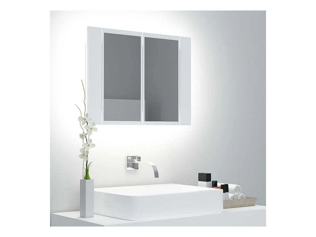 Armoire de salle de bain à miroir à LED Blanc 60x12x45