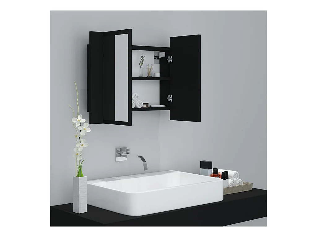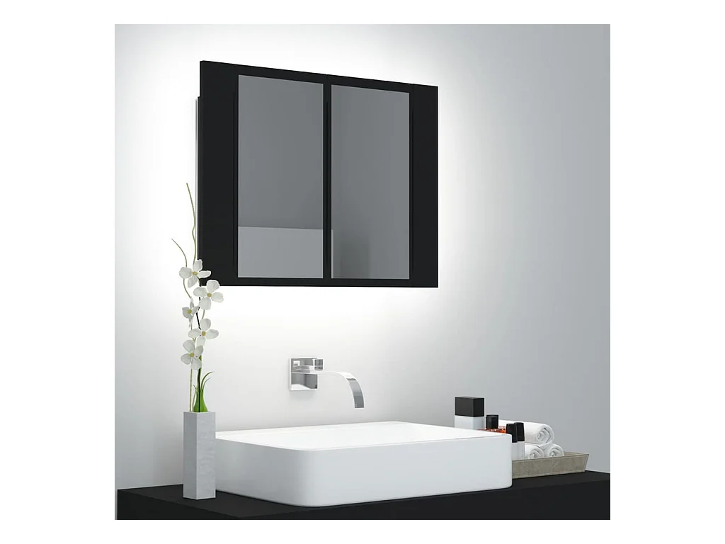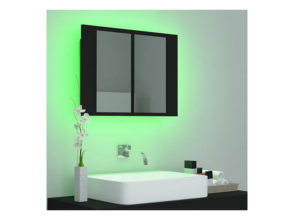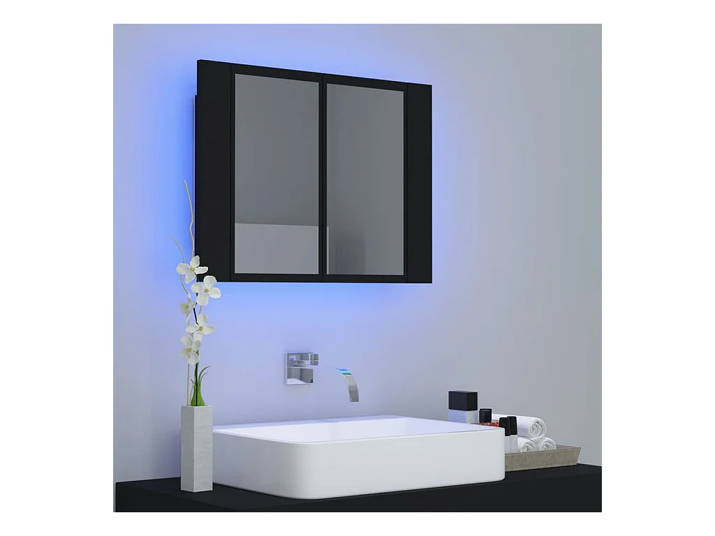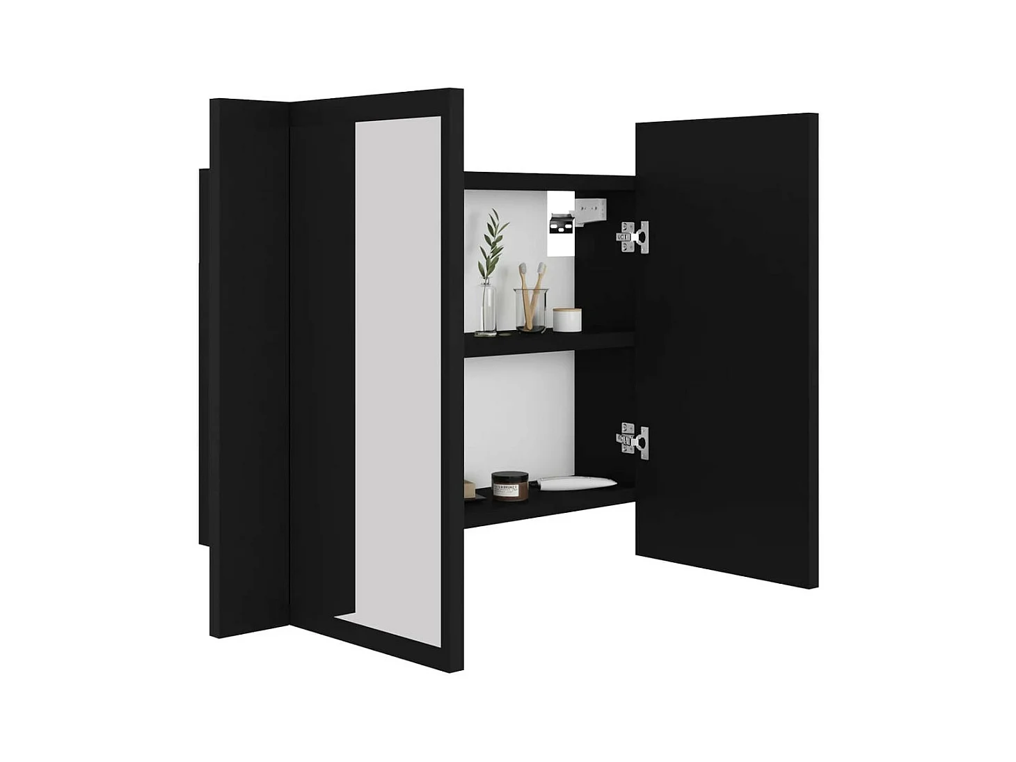 Armoire de salle de bain à miroir LED Noir brillant 60x11x80