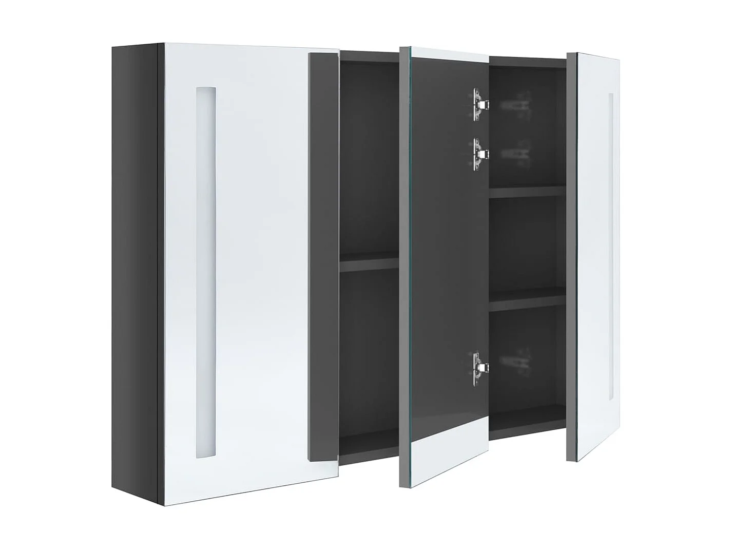 Armoire de salle de bain à miroir LED 89x14x62 Gris brillant
