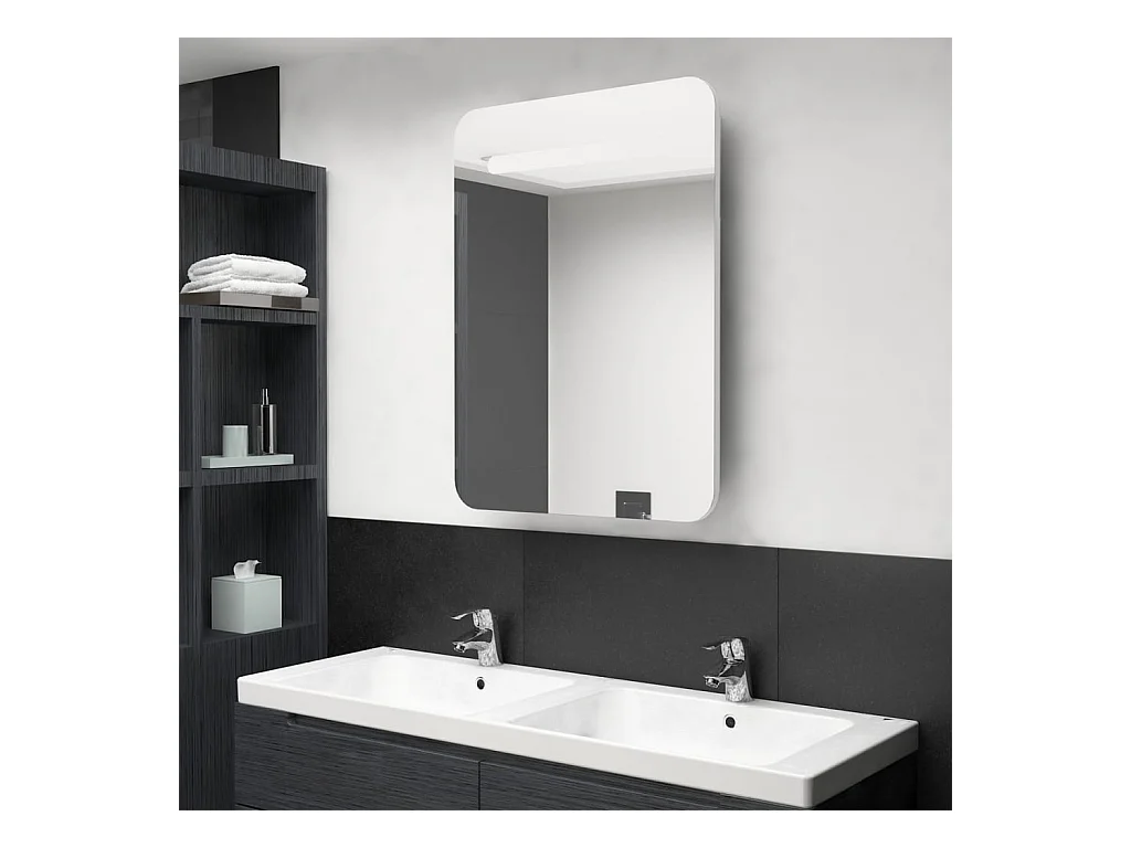 Armoire de salle de bain à miroir LED Blanc brillant 60x11x80