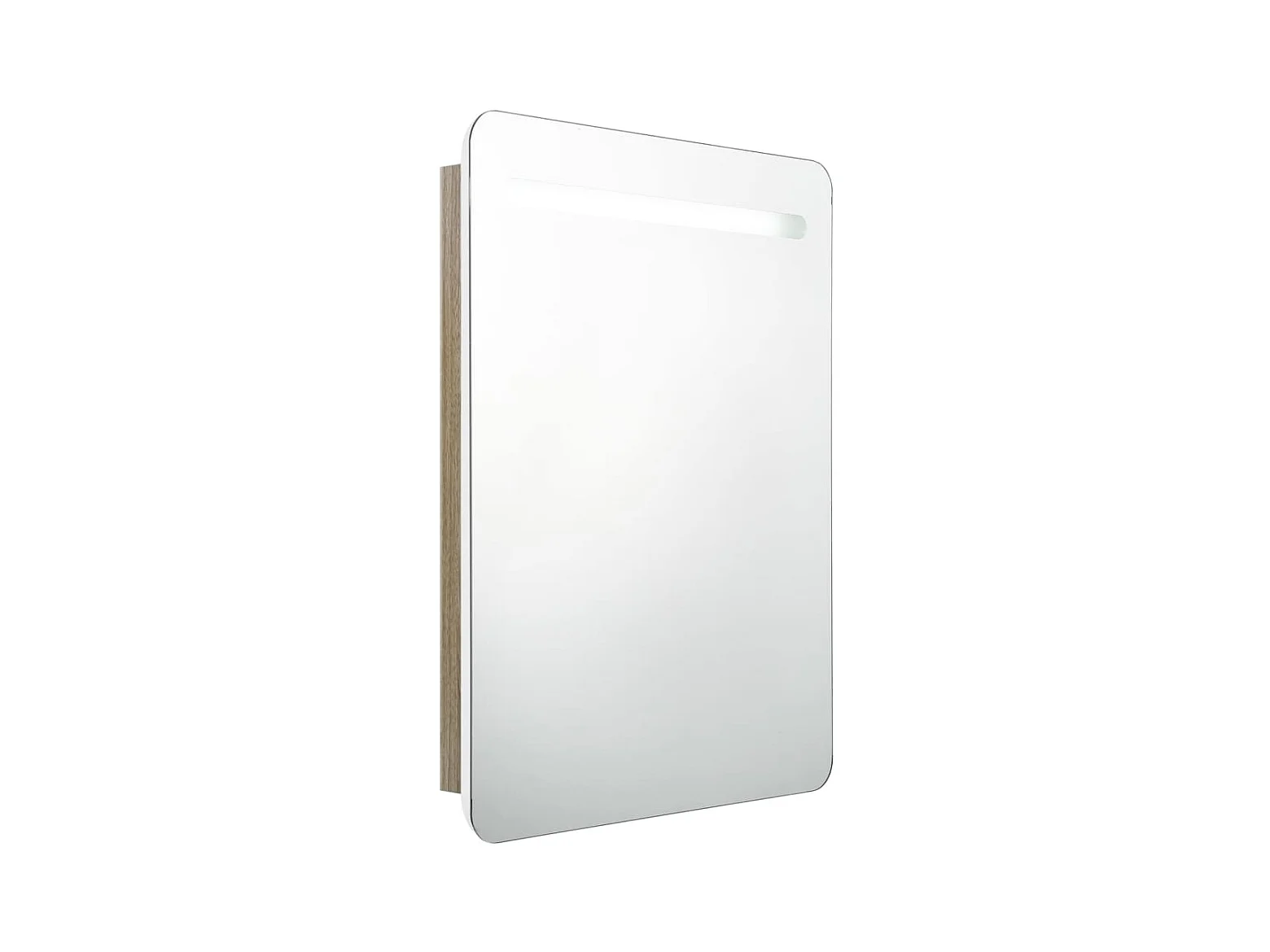 Armoire de salle de bain à miroir LED Blanc et chêne 60x11x80