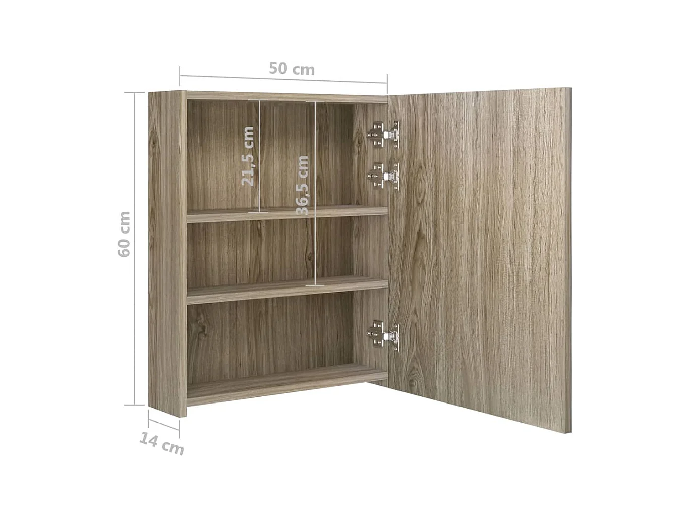 Armoire de salle de bain à miroir LED Chêne 50x14x60
