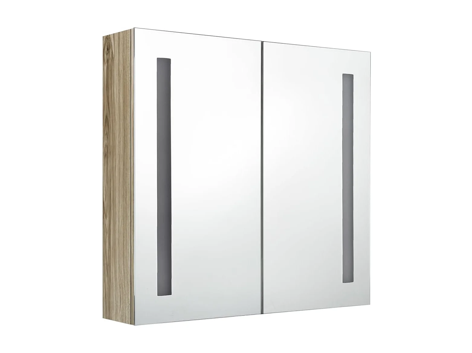 Armoire de salle de bain à miroir LED Chêne 62x14x60
