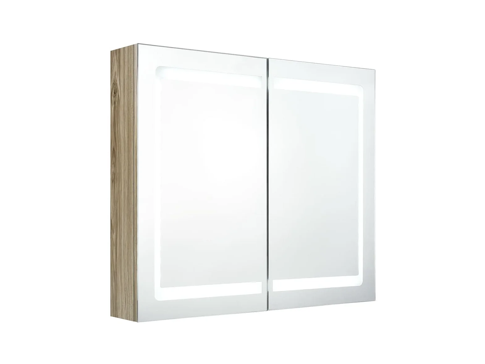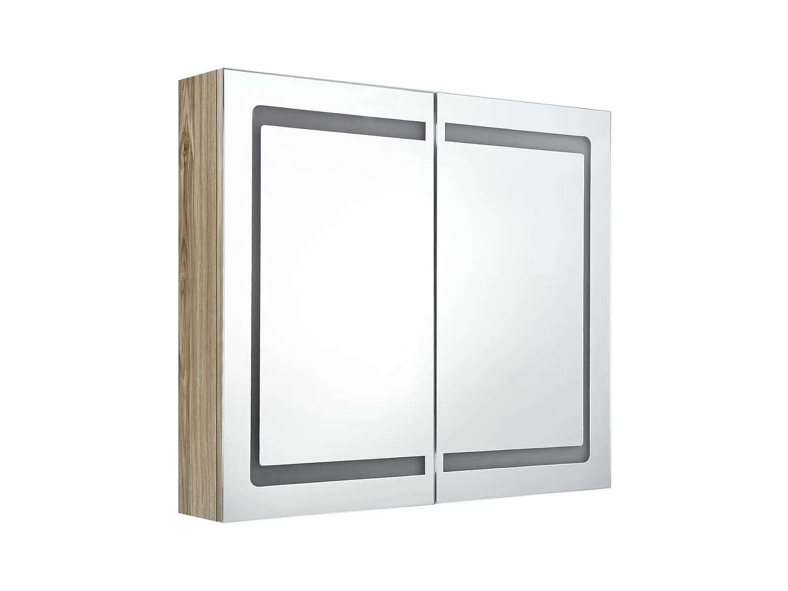 Armoire de salle de bain à miroir LED Chêne 80x12x68
