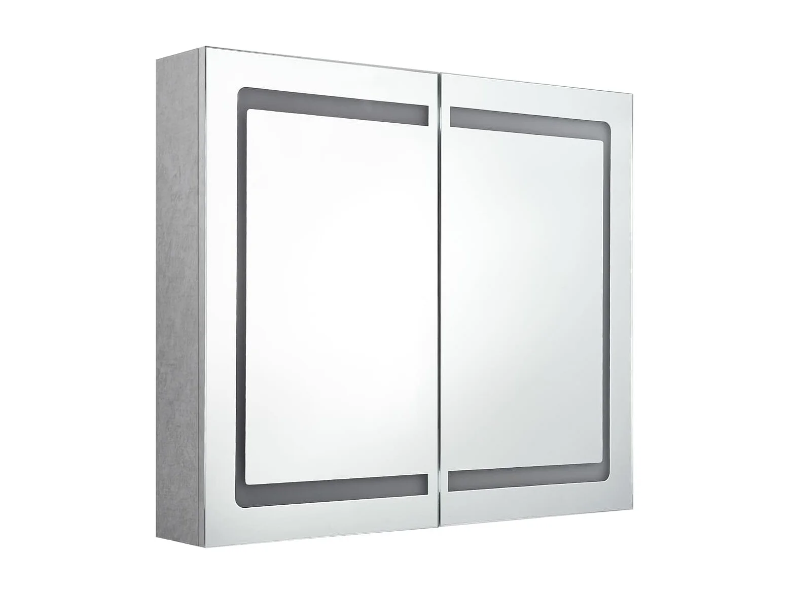 Armoire de salle de bain à miroir LED Gris béton 80x12x68