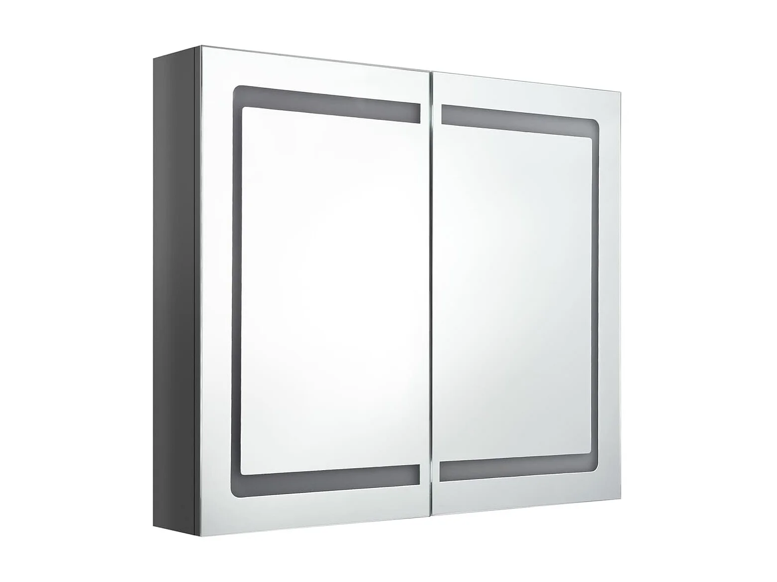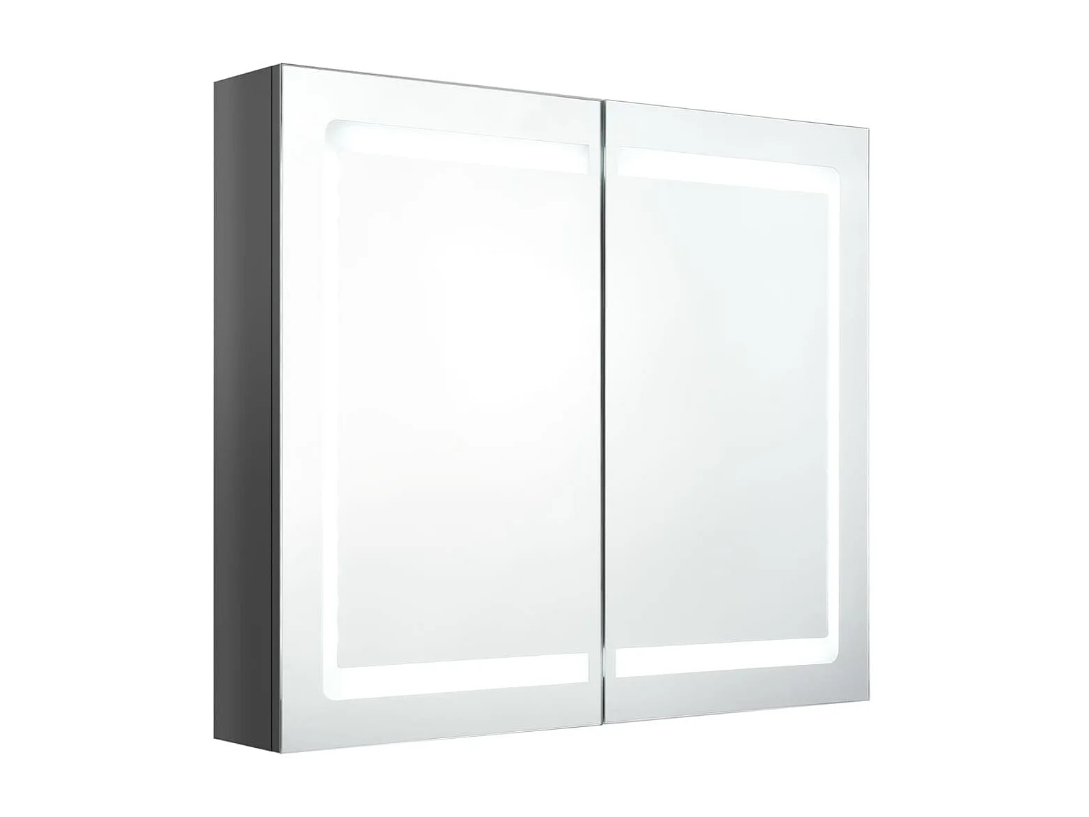 Armoire de salle de bain à miroir LED Gris brillant 80x12x68