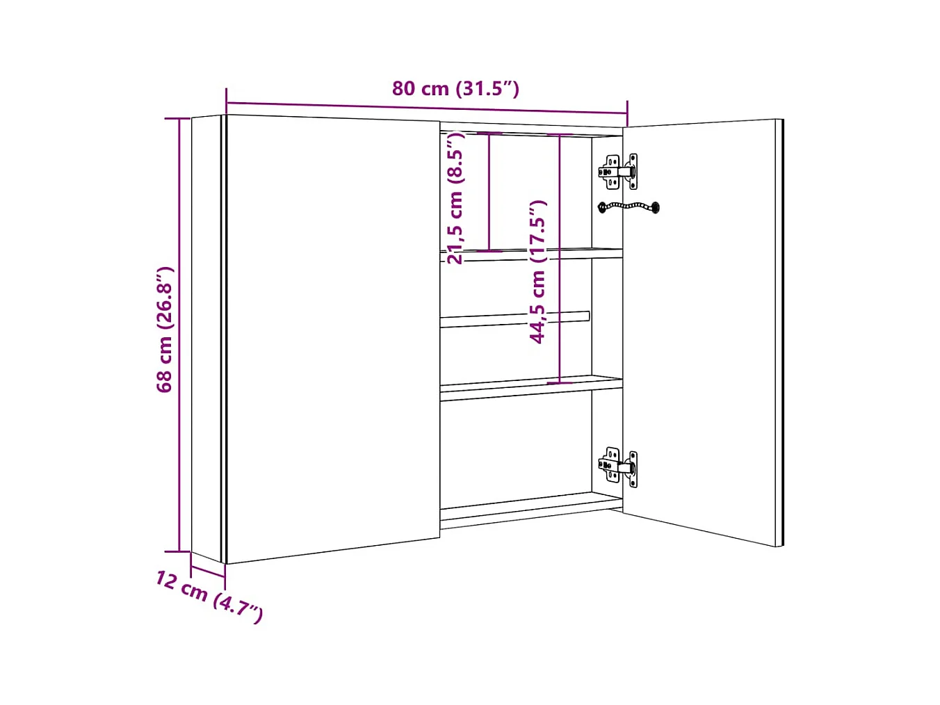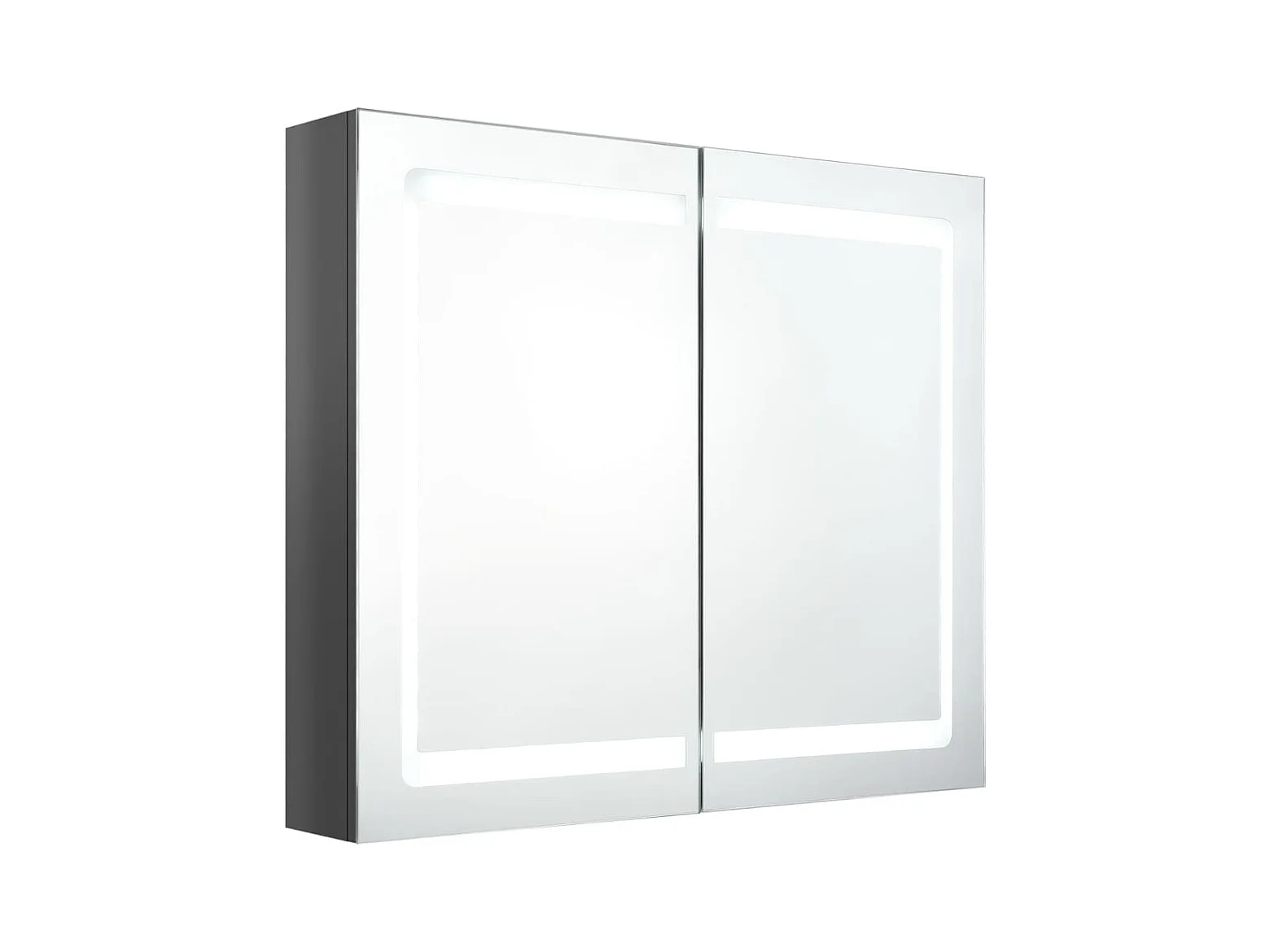 Armoire de salle de bain à miroir LED Gris brillant 80x12x68 cm