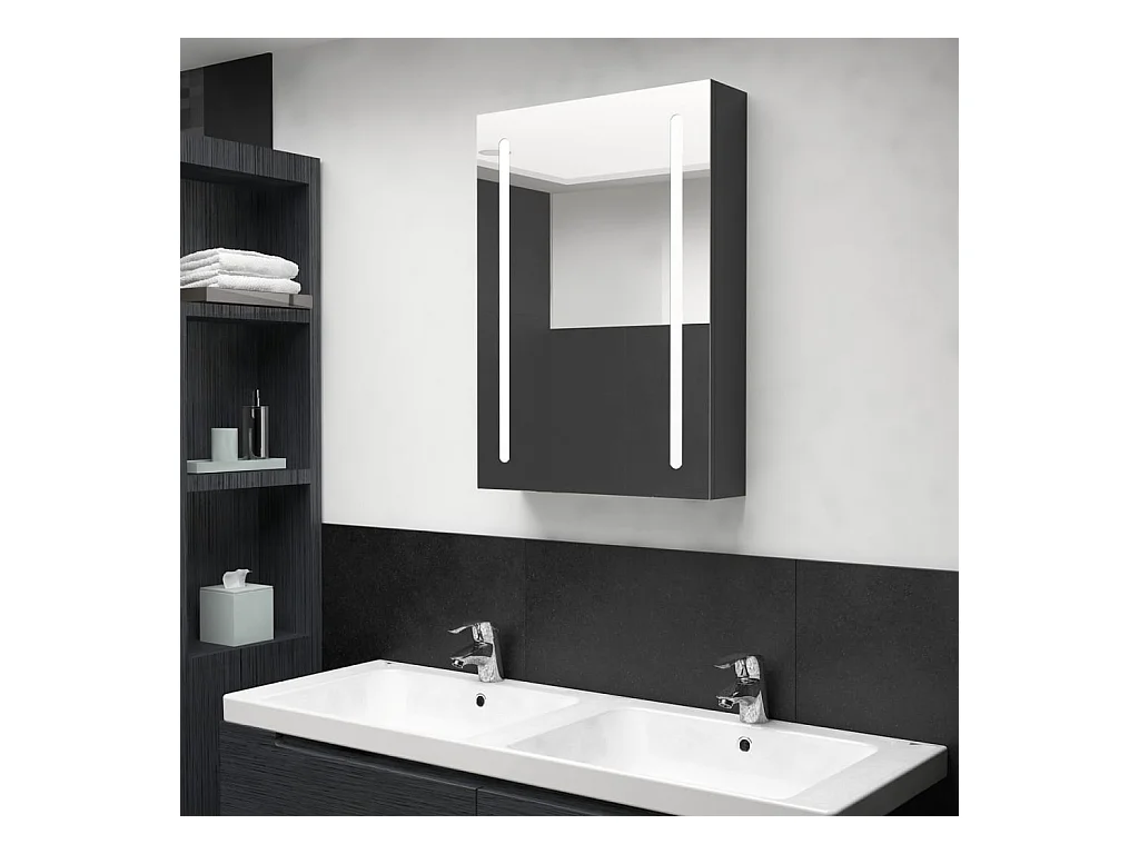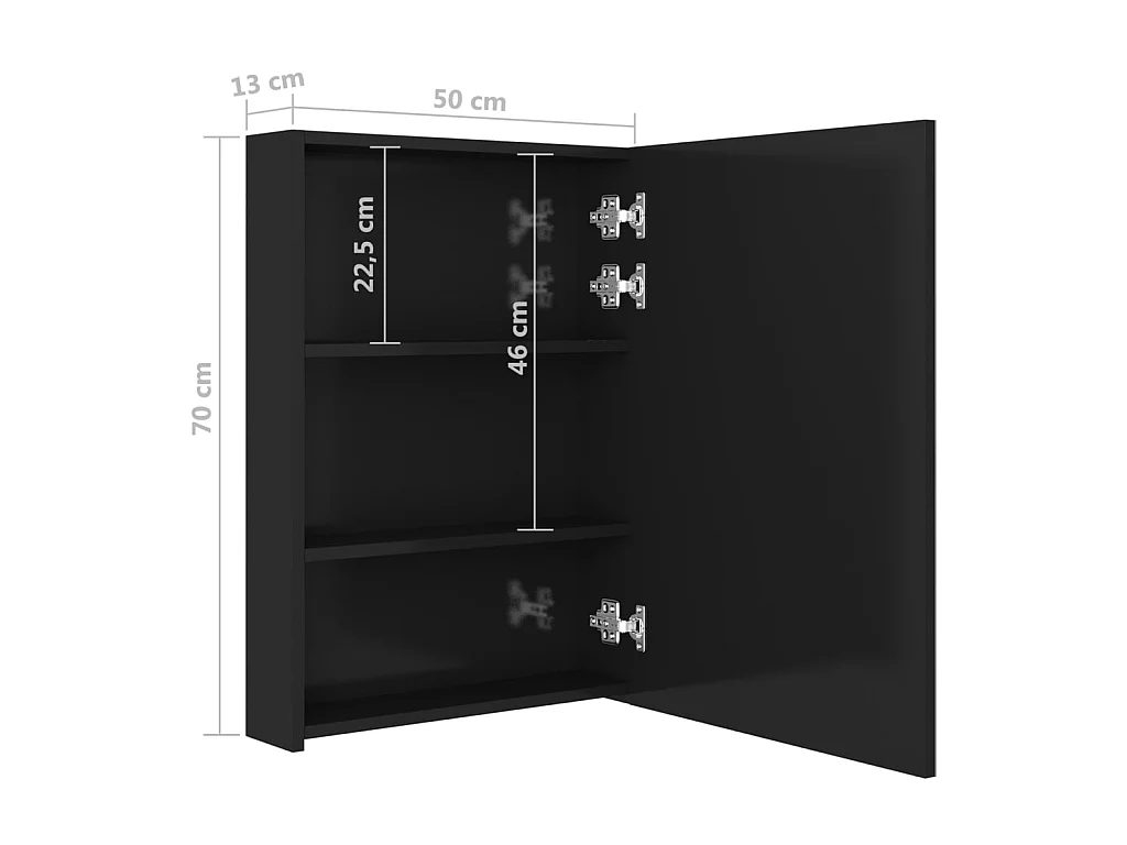 Armoire de salle de bain à miroir LED Noir brillant 50x13x70 2