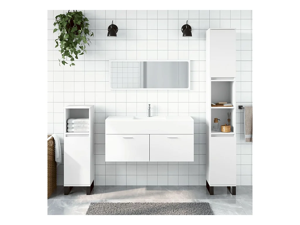 Armoire de bain avec miroir blanc brillant bois d'ingénierie