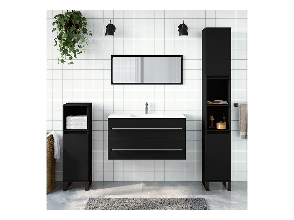 Armoire à miroir de salle de bain noir bois d'ingénierie