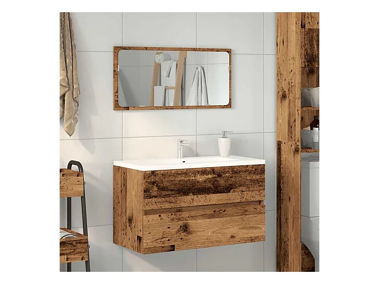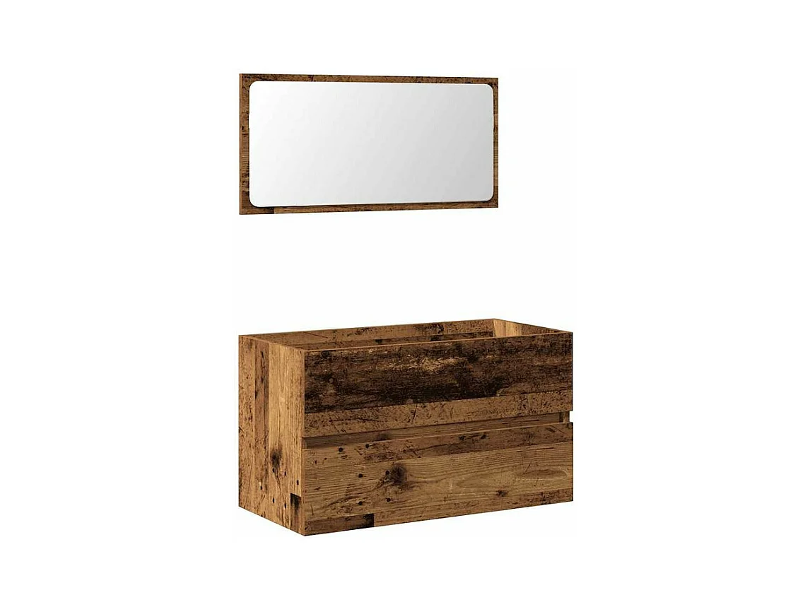 Armoire de salle de bain et miroir vieux bois bois d'ingénierie