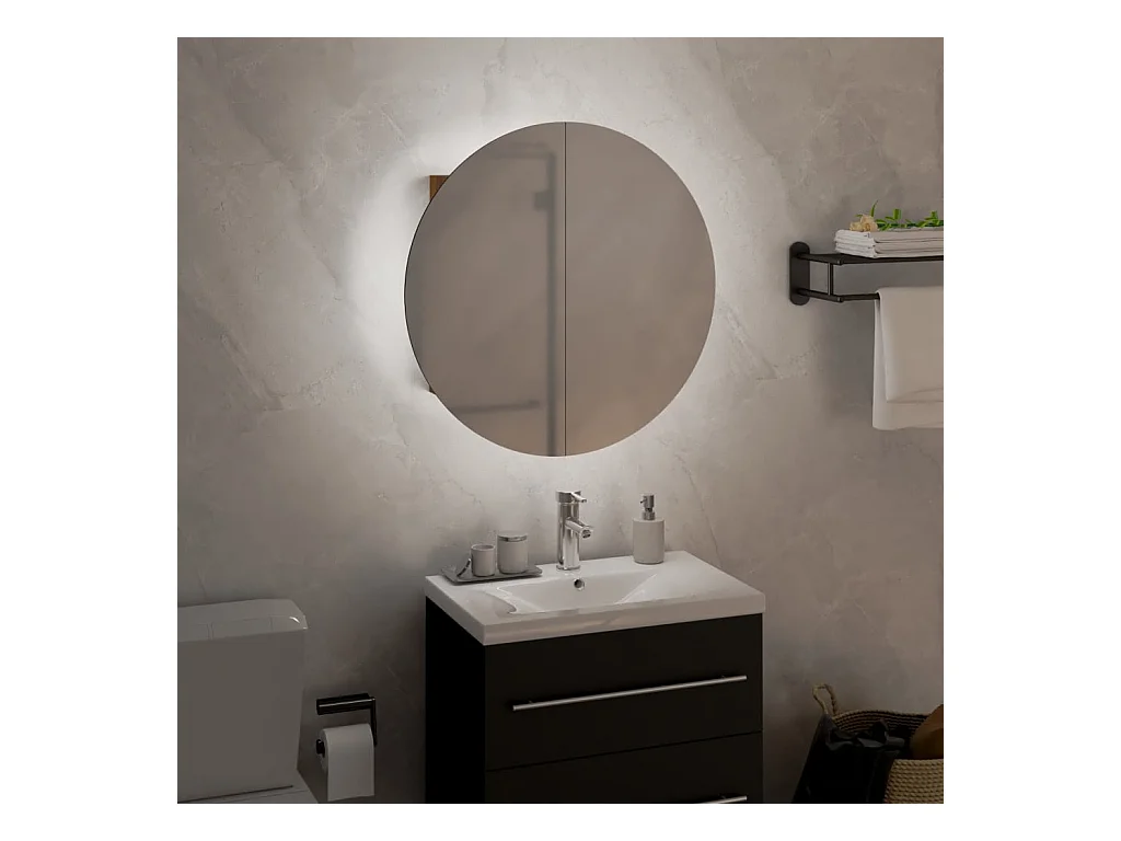 Armoire de salle de bain miroir rond et LED Chêne 40x40x17,5 cm