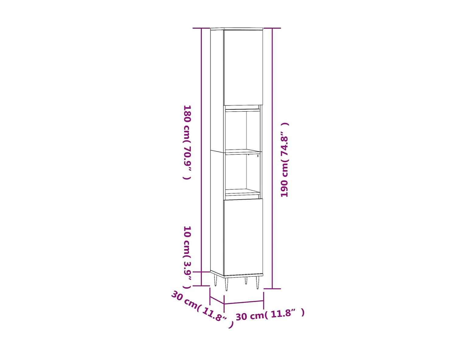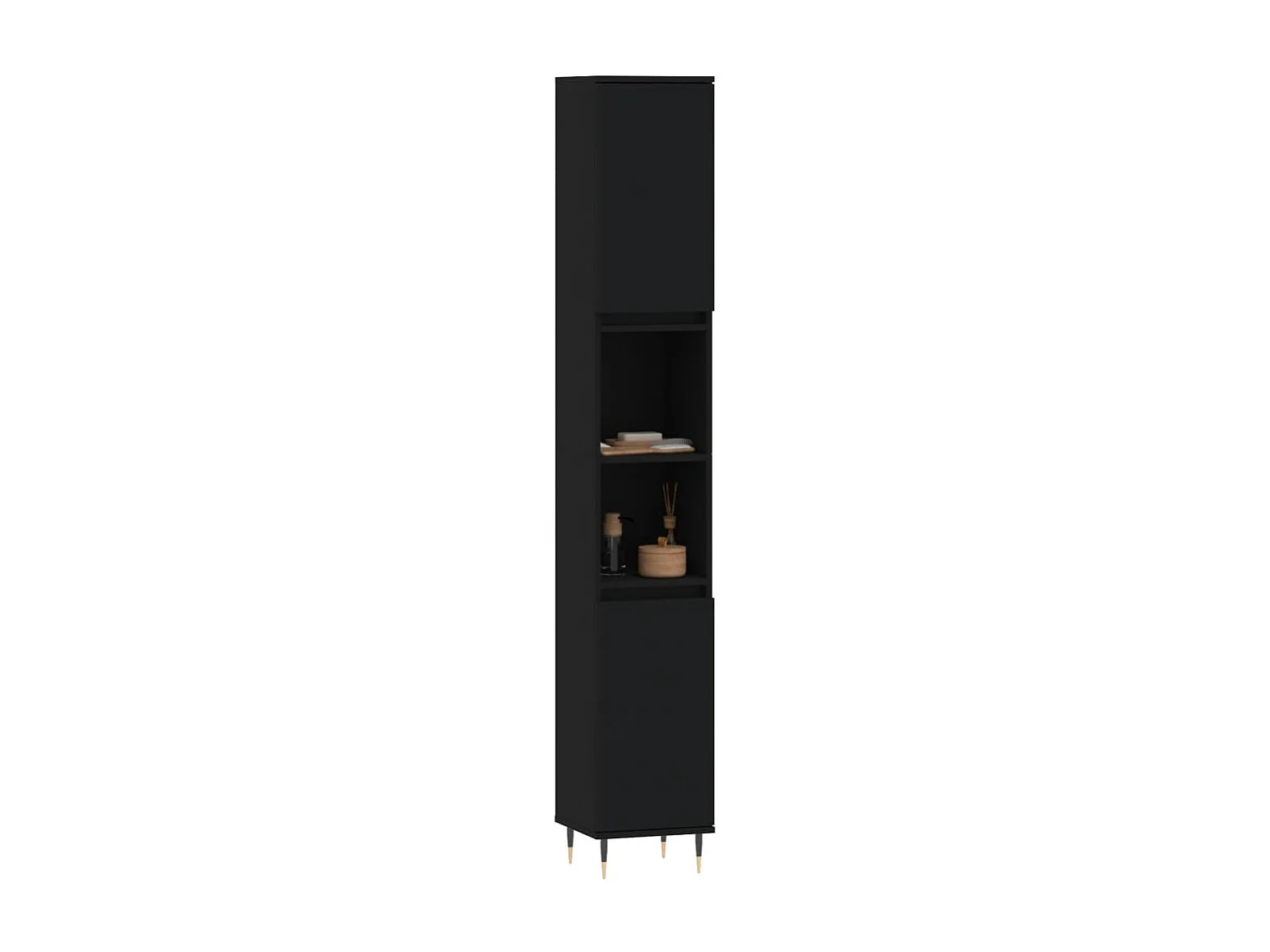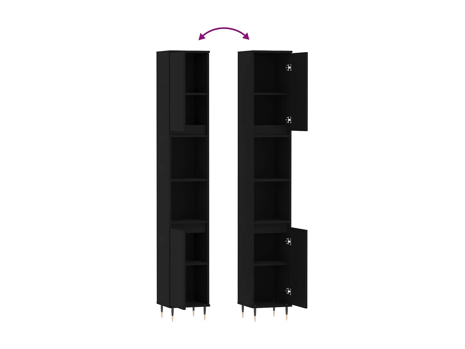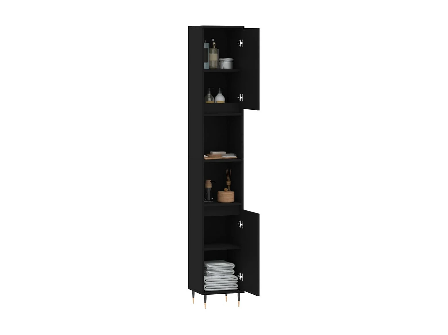 Armoire de salle de bain noir 30x30x190 cm bois d'ingénierie