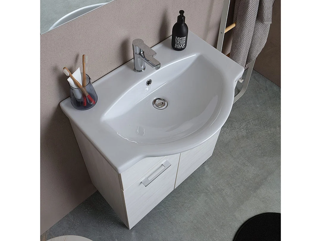 Armoire De Salle De Bains De 65 Cm En Chêne Blanc, À Poser Au Sol | Rimini