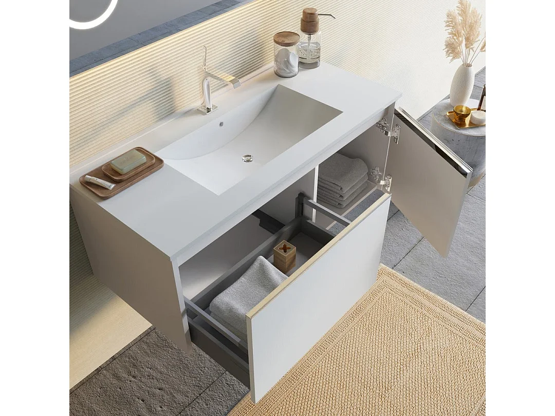 Armoire De Salle De Bains Murale Blanche De 100 Cm, Miroir Tactile Et Horloge | Monaco