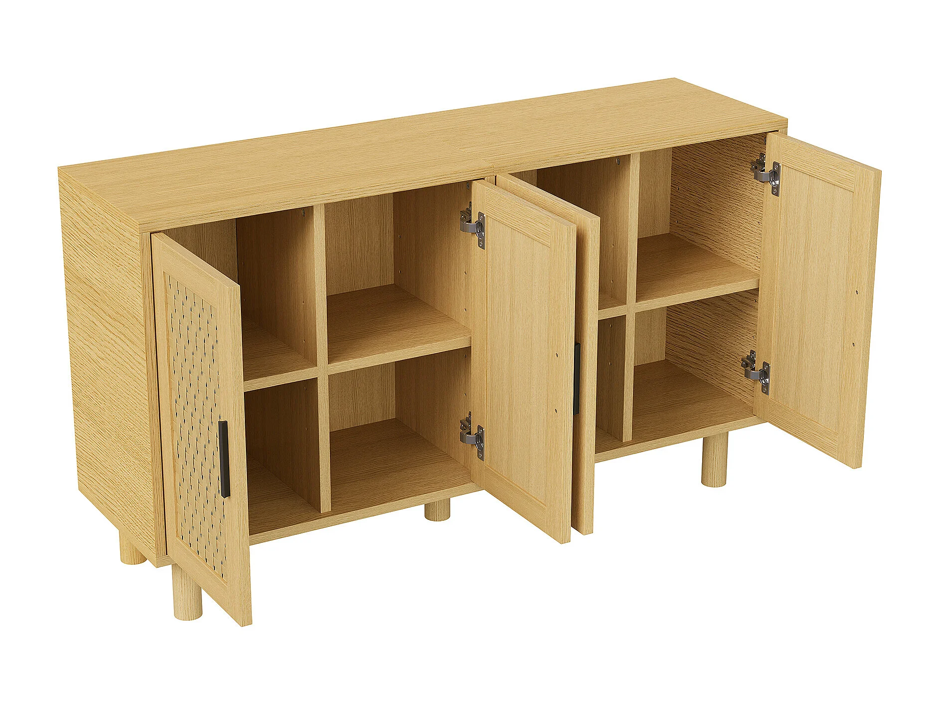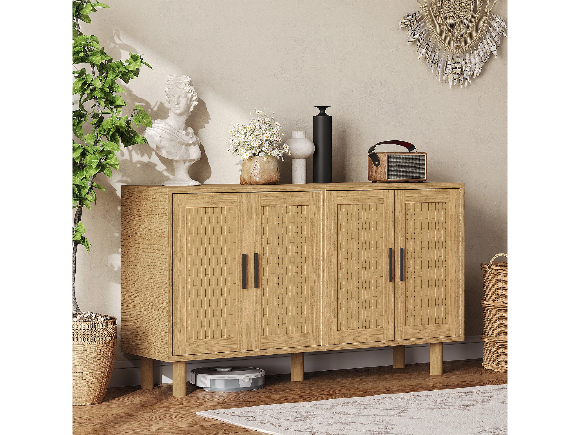 Armoire de stockage en bois avec 4 portes en rattan-coffre-tiroirs-armoire de cuisine buffet placard pour chambre salon-chêne couleur