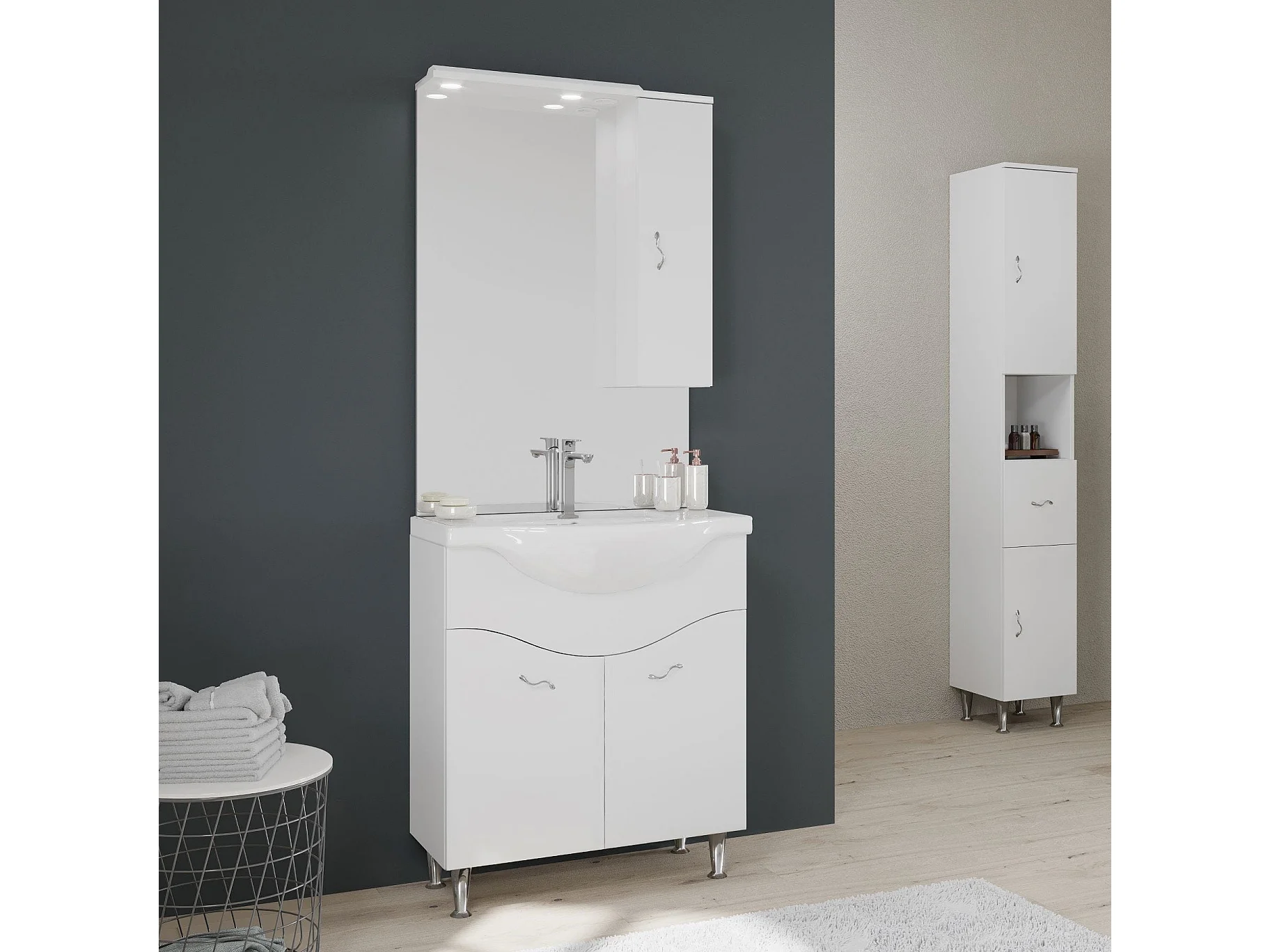 Armoire De Toilette 75 Cm 2 Portes Et Meuble Haut En Blanc Brillant | Easy