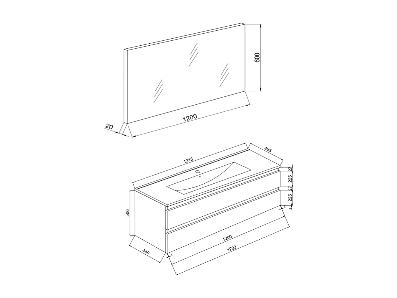 Armoire De Toilette Avec Lavabo Intégré 120 Cm Avec Miroir | Berlin
