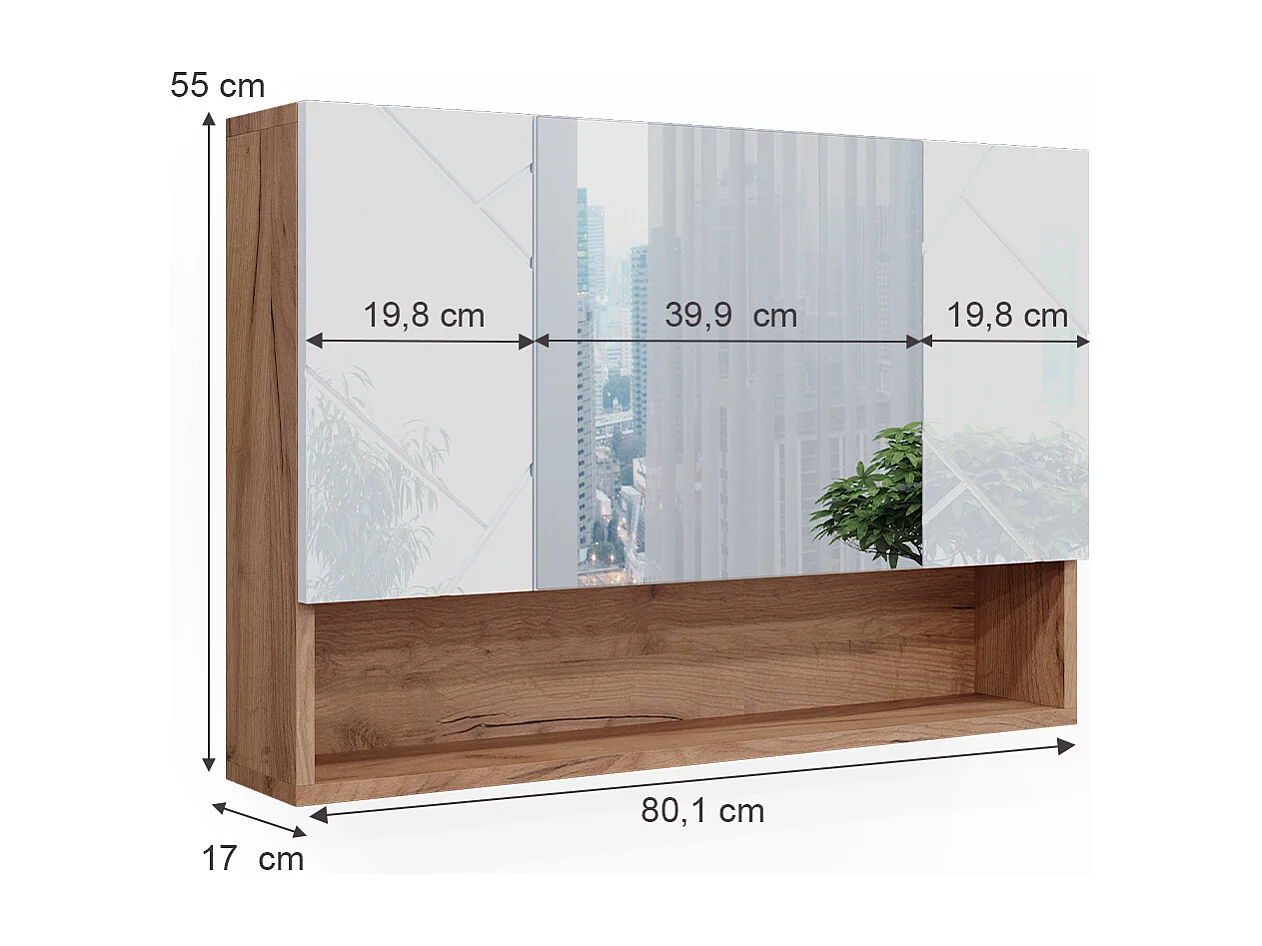 Armoire de toilette blanc brillant/chêne doré 80.1x17x55 irma