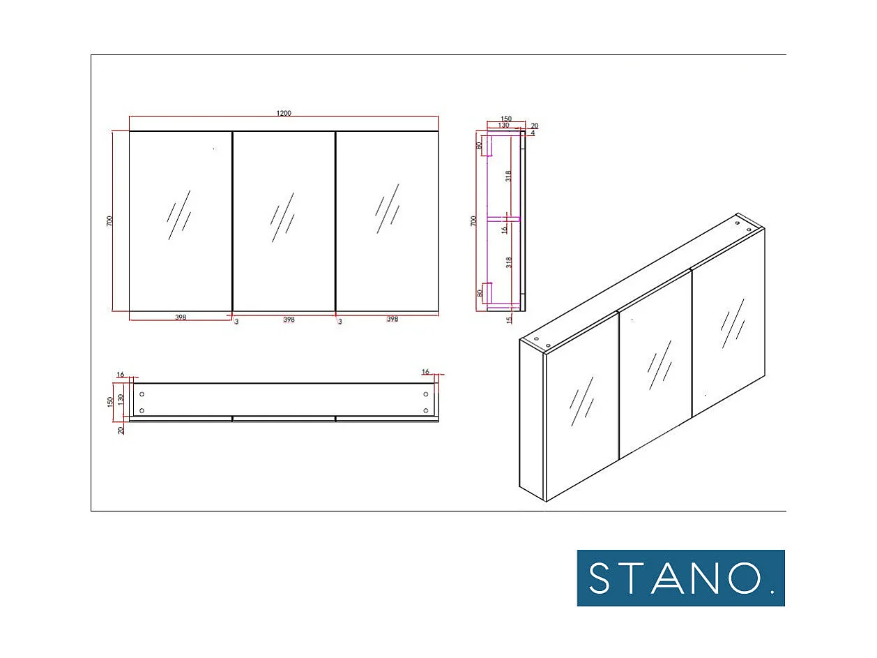 Armoire de toilette bloc-miroir FORTINA largeur 120 cm blanc