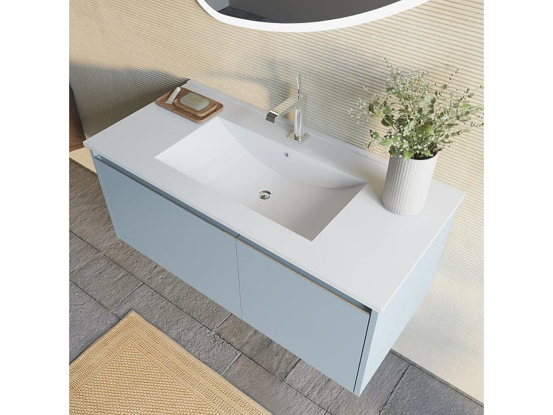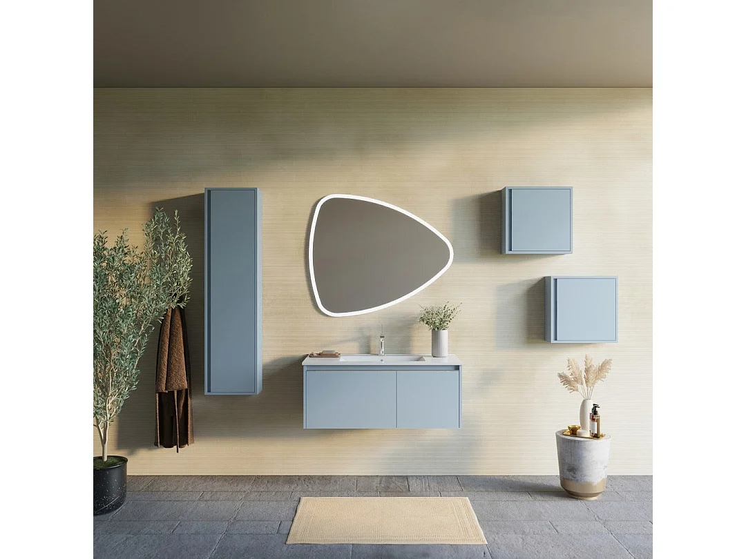 Armoire De Toilette Murale Avec Lavabo De 100 Cm Bleu Mat, Miroir À Led | Monaco