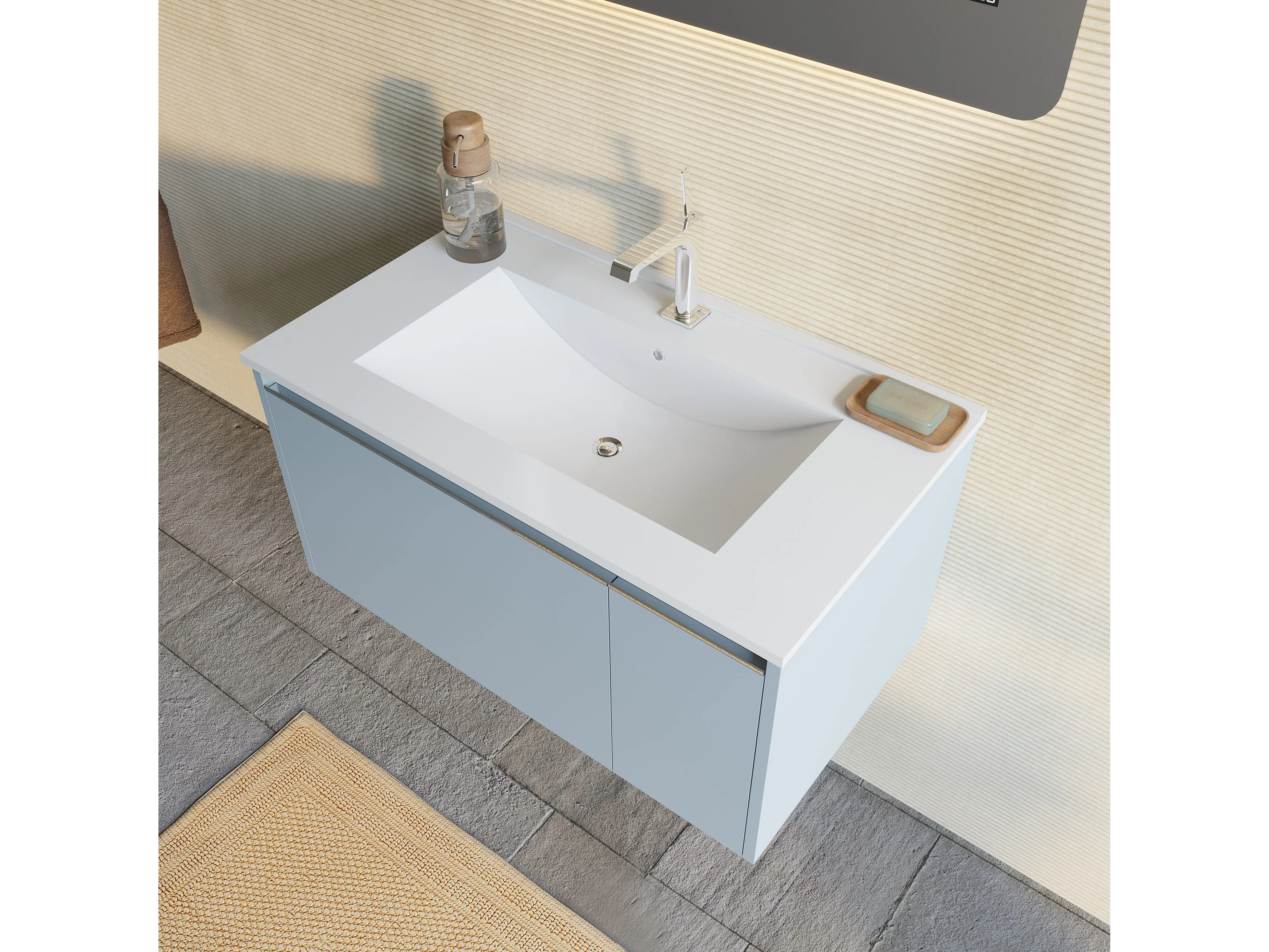 Armoire De Toilette Suspendue De 80 Bleu Clair Matcm Avec Lavabo Et Miroir | Monaco