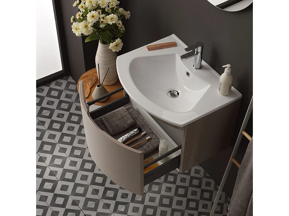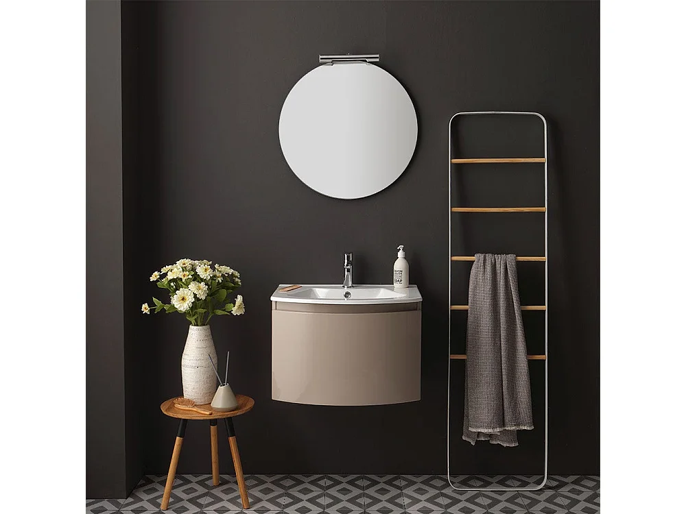 Armoire De Toilette Suspendue Ligne Courbe 62 Cm Cappuccino Poli Miroir Rond | Riva