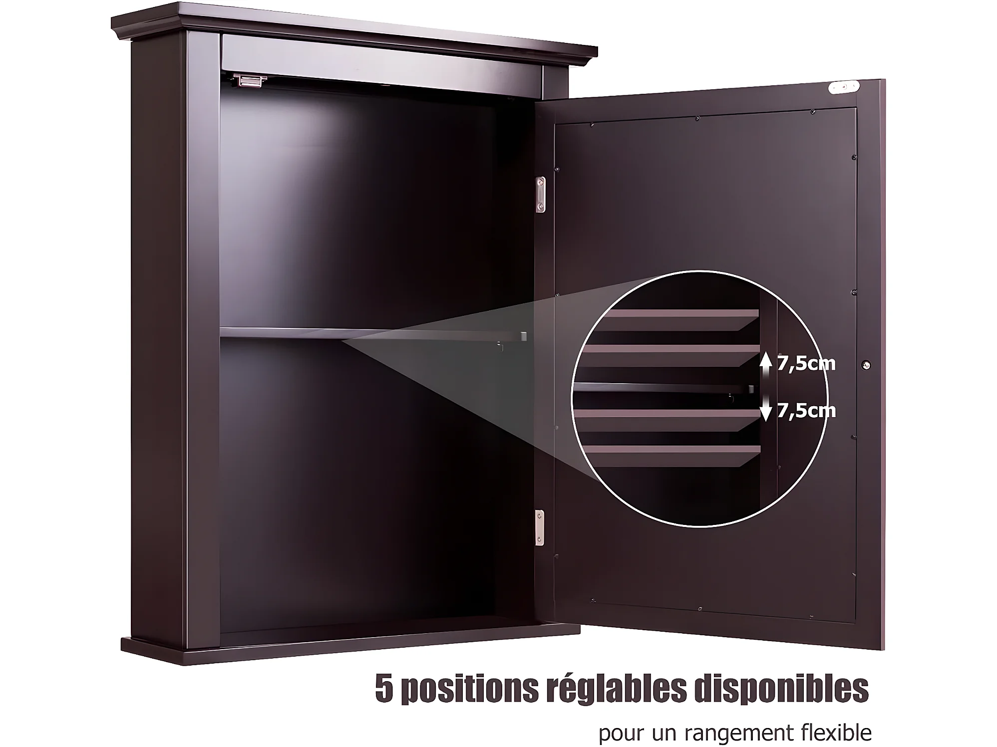 Armoire de toilettes mural salle de bains , ajustable en 5 positions 56x14x69,5cm marron