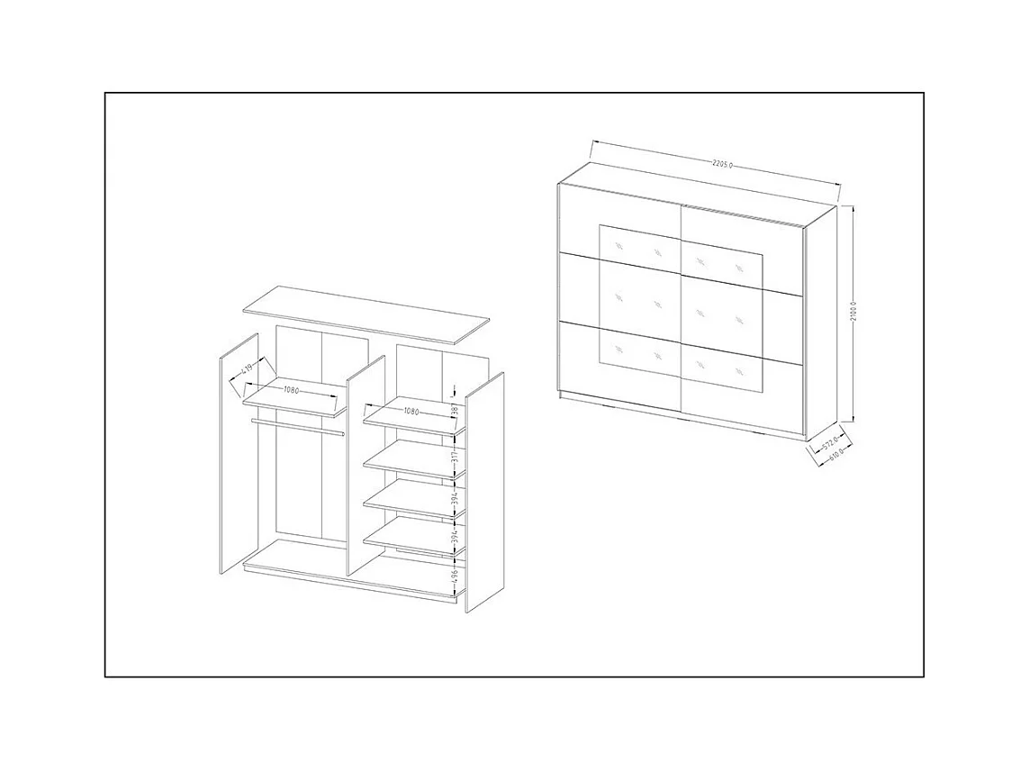 Armoire design 2 portes 220cm couleur chêne clair et blanc. Collection EOS