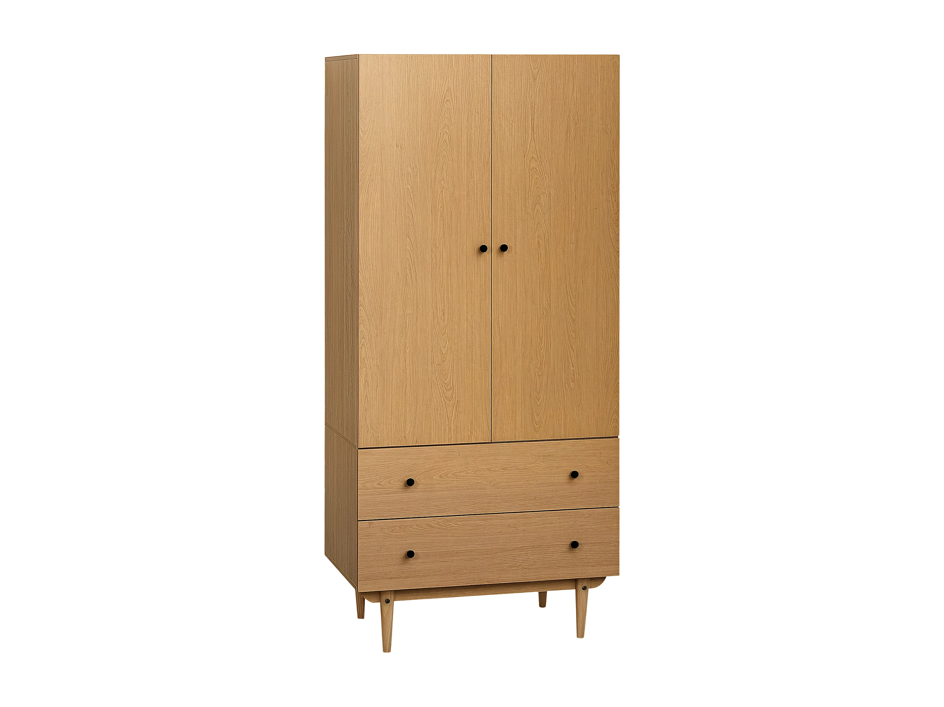 Armoire design scandinave - 2 portes, penderie, 2 tiroirs - piètement bois de pin panneaux aspect bois clair