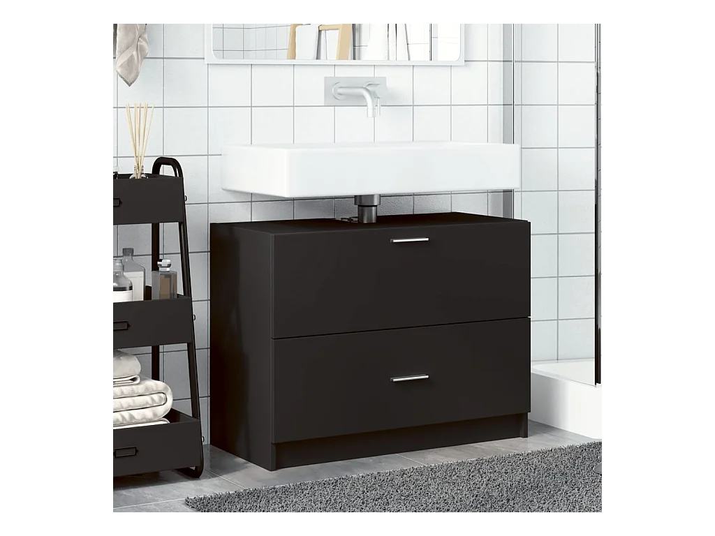 Armoire lavabo de salle de bain noir bois d'ingénierie