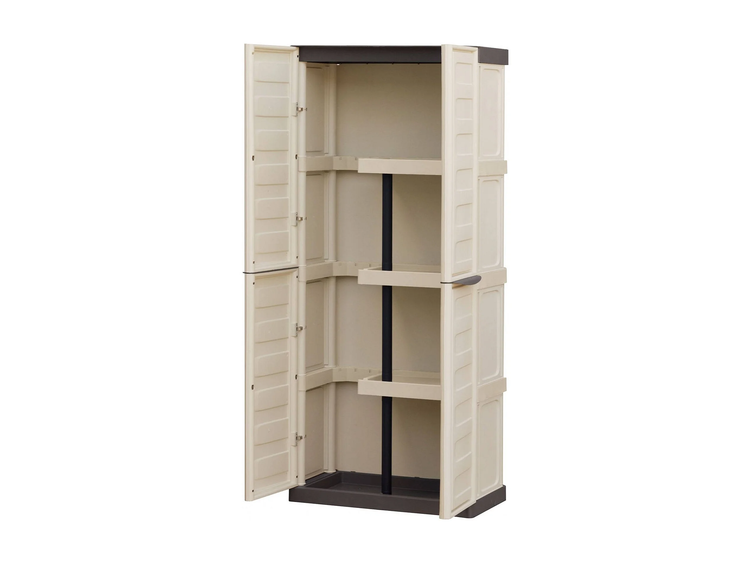 Armoire d'extérieur Avelgem, Armoire de balcon polyvalente, armoire à balais 2 portes, 100% Made in Italy, 70x47h178 cm, Beige et Marron, Finition rayée