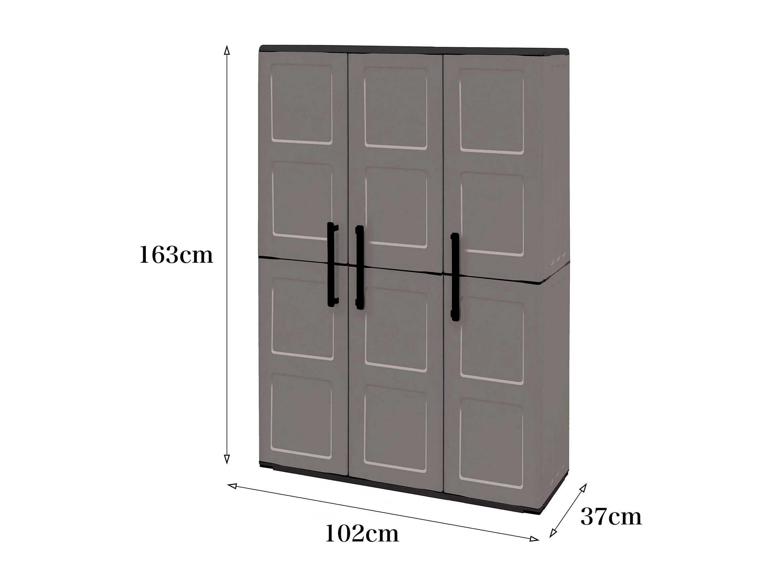 Armoire d'extérieur Bilzen, Mobilier d'extérieur, Armoire de balcon polyvalente, 100% Made in Italy, Gris et Noir, Finition à carreaux, 102x37h163 cm