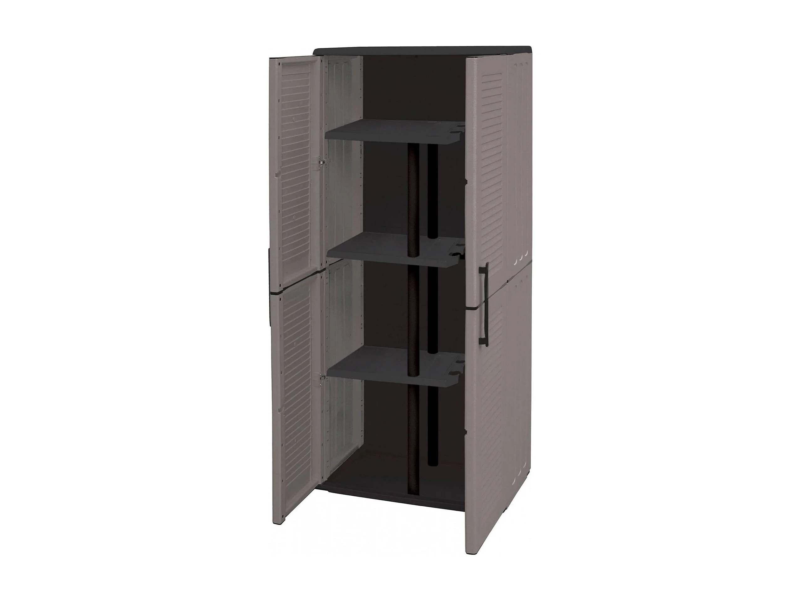 Armoire d'extérieur Geel, Armoire porte-balai polyvalente, Armoire d'extérieur 2 portes, 100% Made in Italy, Finition rayée, 68x37h163 cm, Gris et Noir