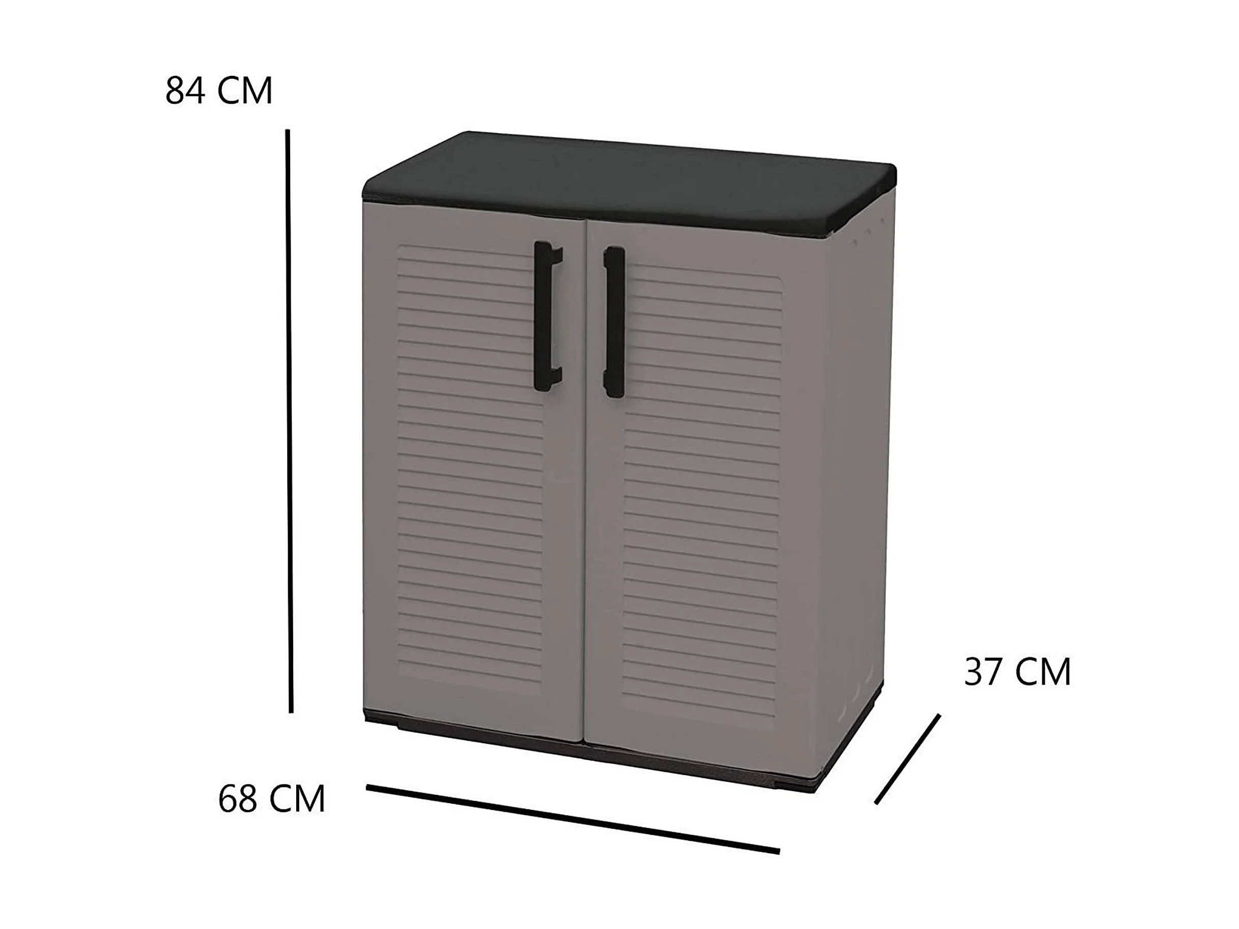Armoire d'extérieur Mol, Armoire de balcon polyvalente, Armoire d'extérieur avec 2 portes, 100% Made in Italy, 68x37h84 cm, Finition rayée, Gris et Noir