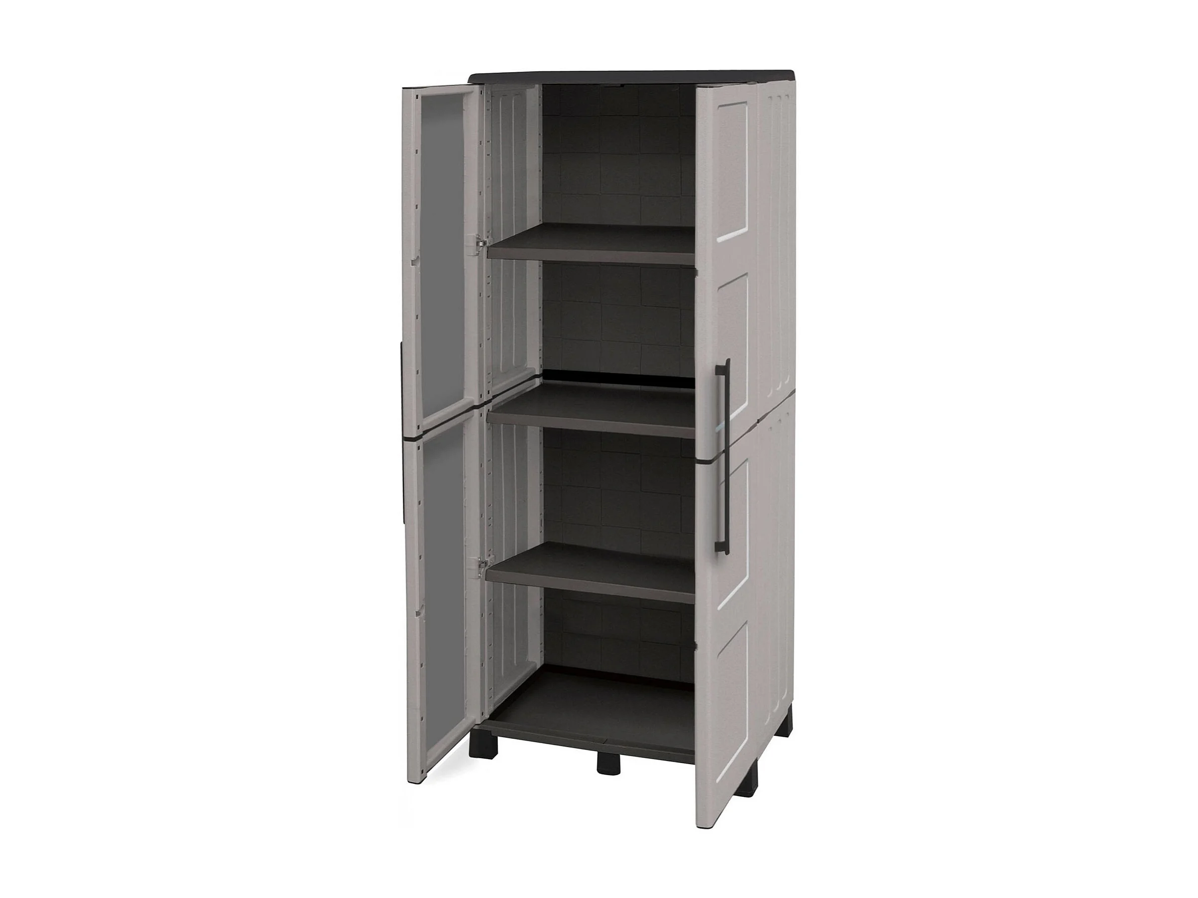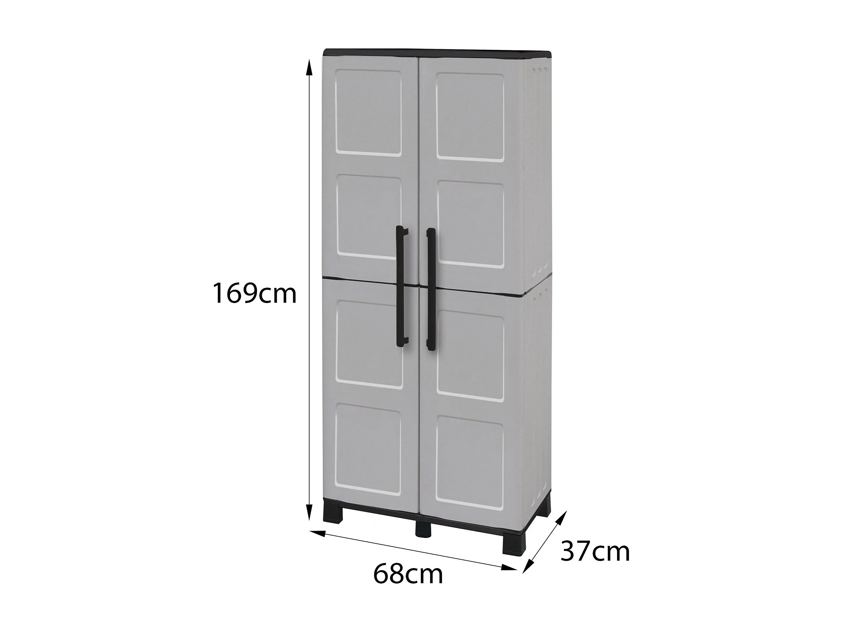 Armoire d'extérieur Verviers, Armoire de balcon polyvalente à 2 portes, 100% Made in Italy, 68x37h169 cm, Gris clair et noir, Finition damier